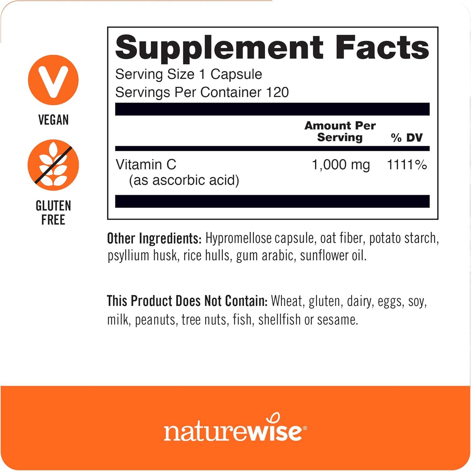 Vegan & Non-Gmo: Naturewise Vitamin C 1000 Mg Capsules Are Vegan, Non-Gmo, And Gluten Free. These Premium Capsules Do Not Contain Wheat, Gluten, Dairy, Eggs, Soy, Milk, Tree Nuts, Peanuts, Fish, Shellfish, Or Sesame