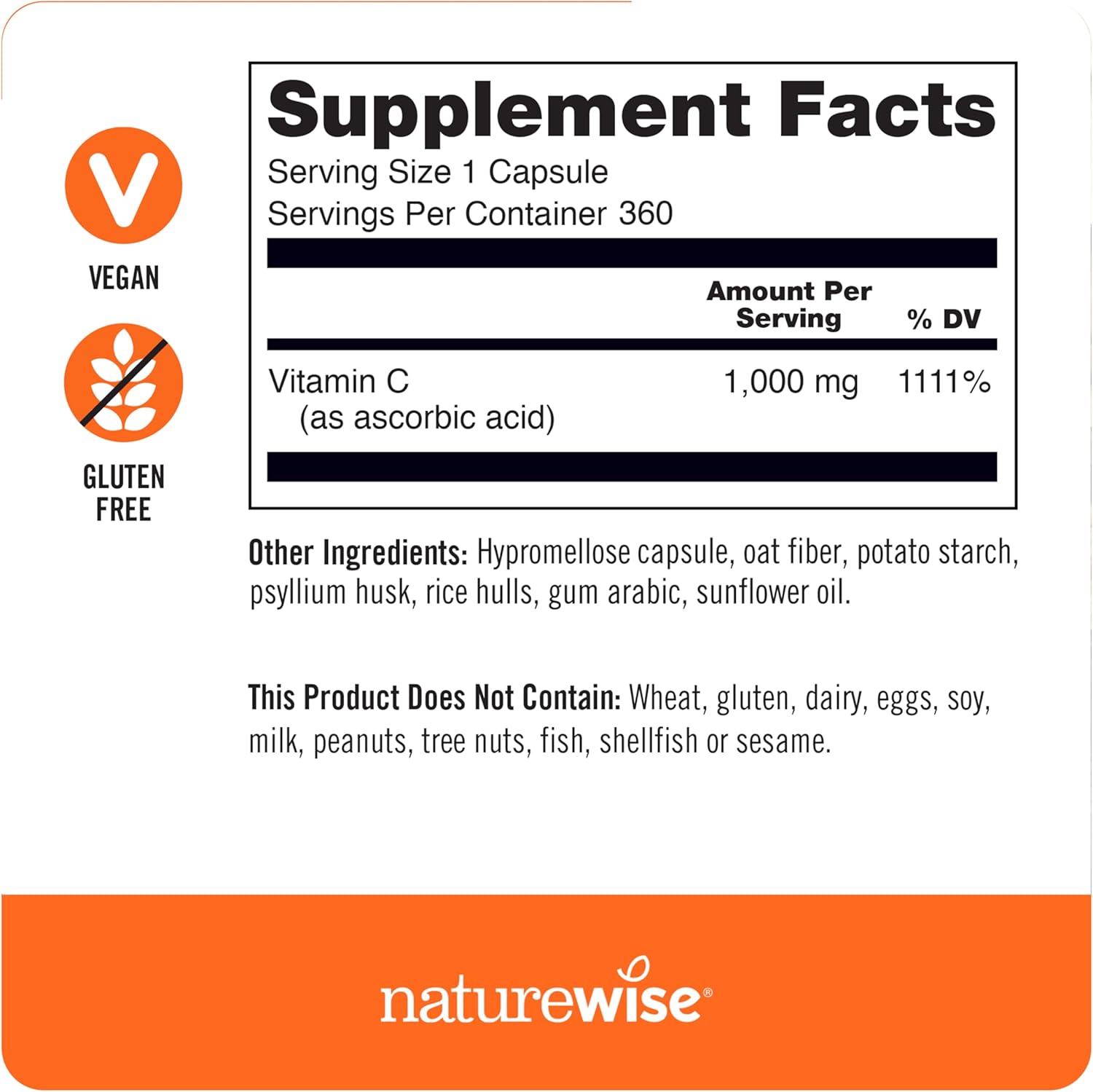 Vegan & Non-Gmo: Naturewise Vitamin C 1000 Mg Capsules Are Vegan, Non-Gmo, And Gluten Free. These Premium Capsules Do Not Contain Wheat, Gluten, Dairy, Eggs, Soy, Milk, Tree Nuts, Peanuts, Fish, Shellfish, Or Sesame