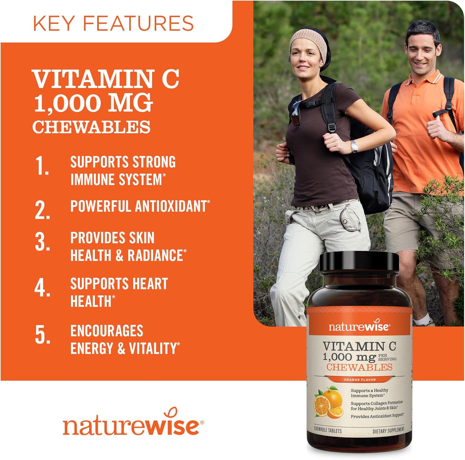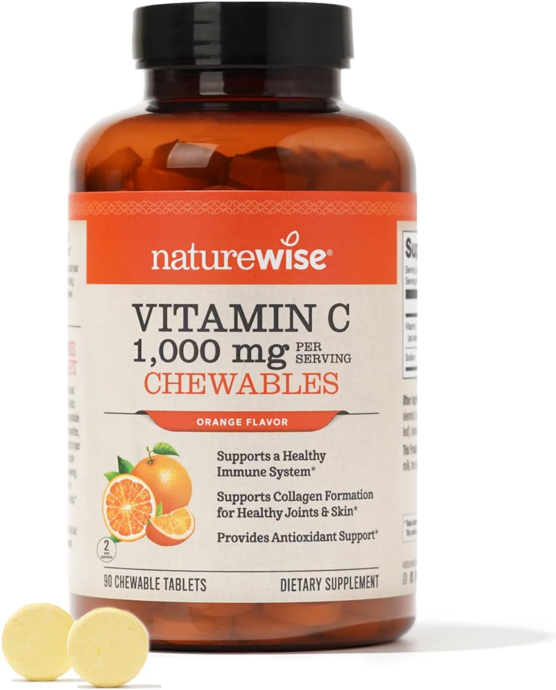 Naturewise Vitamin C 1000Mg Chewable Tablet Supplement - Support For Healthy Immune System & Collagen Synthesis - Vegan, Non-Gmo, Soy & Gluten Free, Orange Flavor - 90 Count[45 Days Supply]