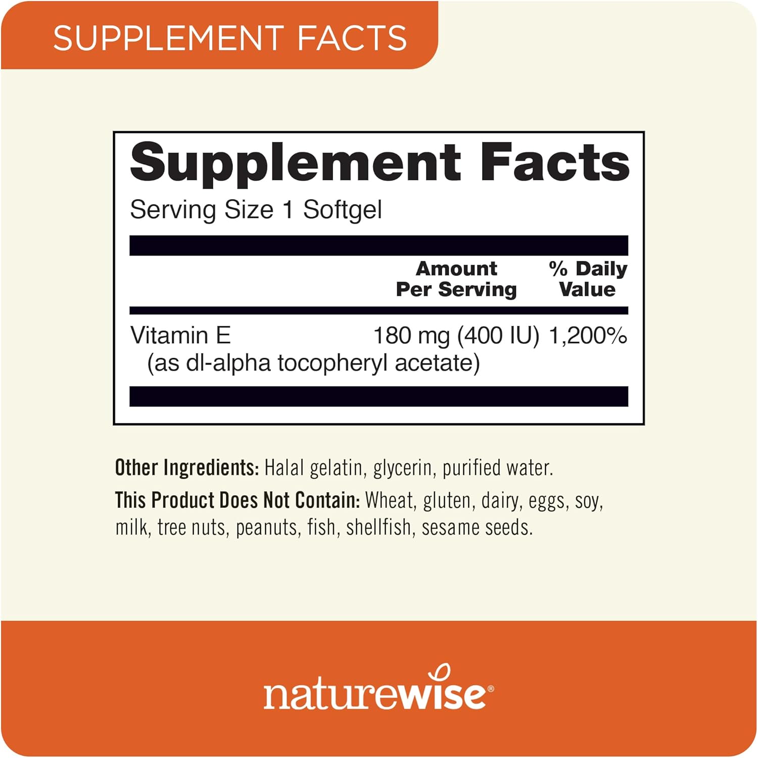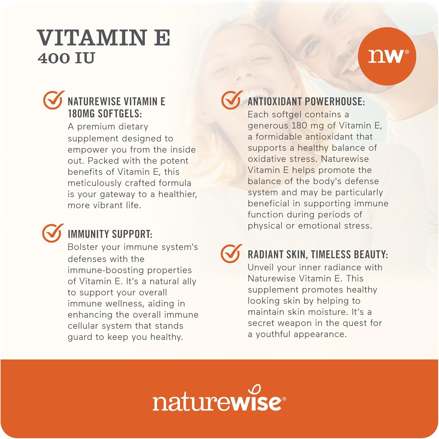 Naturewise Vitamin E 400 Iu Softgels (180Mg Dl-Alpha) - Dairy, Gluten, And Soy Free, Non-Gmo Antioxidant Dietary Supplement For Skin, Heart, Eye, And Immune Health Support - 2-Month Supply, 60 Count