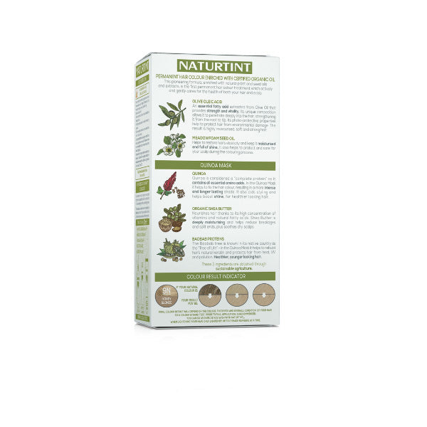 Product Information:Permanent Hair Colour, 100% Grey Coverage From First Application. Quick &Amp; Easy To Use, Non-Drip Gel Formula Available In 30+ Blendable Shades. 92% Naturally Derived Ingredients, Usda Certified Biobased. No Ammonia, Vegan Friendly,Features:Permanent Hair Colour With 100% Grey Coverage From The Very First Application, In A Quick And Easy To Use, Non-Drip Gel Formula Available In Over 30 Blendable Shades. 92% Naturally Derived Ingredients Including Plant And Seed Oils And Extracts Carefully Chosen For Their Proven Hair And Scalp Enhancing Benefits. No Ammonia, Vegan Friendly And Cruelty Free. Available In A Variety Of Shades Ranging From Ebony Black To Light Dawn Blonde, Naturtint Permanent Hair Colours Provide Everything You Need To Colour, Nourish, Protect And Care For Your Hair In One Complete Colouring Treatment. Easy To Follow Instructions Help You Achieve Long Lasting, Naturally Radiant Colour And Shine In Just 40 Minutes. And 100% Grey Coverage! Every Box Contains A 50Ml Tube Of Quinoa Multi-Care Mask (No Single-Use Sachets!) To Use Immediately After Application And To Maintain Your Colour In The Weeks Following, With Enough For Up To 4 Applications. This Innovative Mask Is Enriched With Quinoa To Fix The Hair Colour, Organic Shea Butter To Nourish And Moisturise And Baobab Proteins To Rebuild HairāS Keratin. Lighten Your Natural Hair Colour By Up To Two Shades, Go As Dark As You Like Or Simply Cover Your Greys ā With Over 30 Blendable Shades Suitable For All Hair Types, There Really Is A Unique Colour For Everyone! Naturtint Permanent Hair Colour Gels Were The First Hair Colours To Be Usda Certified Biobased - Biobased Products Are Derived From Plants And Other Renewable Agricultural, Marine, And Forestry Materials. Biobased Products Are Cost-Comparative, Readily Available And Perform As Well Or Better Than Their Petroleum-Containing Counterparts. Biobased Products Also Help Us Increase Our Use Of Renewable Resources While Decreasing Our Use Of Non-Renewable Resources, Such As Petroleum. Naturtint Permanent Hair Colours Exceed The Minimum Usda Certified Biobased Content For Hair Styling Products,Warning Or Restrictions:Read And Follow Instructions. This Product Is Not Intended For Use On Persons Under The Age Of 16. Temporary "Black Henna" Tattoos May Increase The Risk Of Allergy. Do Not Colour Your Hair If: You Have A Rash On Your Face Or Sensitive, Irritated And Damaged Scalp. You Have Ever Experienced Any Reaction After Colouring Your Hair. You Have Experienced A Reaction To A Temporary āBlack Hennaā Tattoo In The Past. Contains Phenylenediamines And Hydrogen Peroxide. Do Not Use To Dye Eyelashes Or Eyebrows Or Any Other Areas Of Hair Such As Facial Hair. Avoid Contact With Eyes. Rinse Immediately If Product Comes Into Contact With Them. Wear Suitable Gloves. Keep Out Of Reach Of Children. Do Not Inhale Or Ingest The Product. The Proportion For Mixing The Colourant And Colour Developer Must Always Be 1:1. Prepare And Apply The Mixture In A Well-Ventilated Area. Always Apply The Product Immediately After Preparing The Mixture. Throw Away Any Unused Mixture. Never Mix With Other Products. Always Use Plastic Or Glass Utensils, Never Metal Or Ceramic. A Skin Test Should Always Be Carried Out 48 Hours Before The Use Of Any Hair Dye, Even If You Have Used It Before. If You Experience Any Reaction To The Test, You Should Not Use The Product. We Strongly Recommend Carrying Out A Strand Test At The Same Time, To Assess The Selected Tone And Determine How Long The Colour Needs To Develop, For Example To Cover Grey Successfully. Please Read The Instruction Leaflet Carefully Before Use. For More Information, Call The Naturtint Consumer Helpline On +44 (0) 345 601 8129 Or Email Help@Naturtint.Co.Uk. Box Contents: Naturtint Colourant (60Ml), Naturtint Colour Developer (In Applicator Bottle, 60Ml), Naturtint Quinoa Multi-Care Mask (50Ml), Protective Gloves (Attached To Instruction Leaflet), Instruction Leaflet,Product Specification:Naturtint 9N Colourant 60 Ml: Peg-2 Oleamine. Aqua (Purified Water). Alcohol Denat. Peg-4 Rapeseedamide. Propanediol. Ethanolamine. Oleic Acid. Hydrolyzed Oat Protein. Hydrolyzed Corn Protein. Hydrolyzed Soy Protein. Hydrolyzed Wheat Protein. Limnanthes Alba Seed Oil. Tetrasodium Glutamate Diacetate. Sodium Metabisulfite. Sodium Erythorbate. P-Aminophenol. P-Phenylenediamine. 2-Methylresorcinol. 4-Chlororesorcinol. 4-Amino-2-Hydroxytoluene. Octadecyl Di-T-Butyl-4-Hydroxyhydrocinnamate.Colour Developer 60 Ml: Aqua (Purified Water). Hydrogen Peroxide. Cetyl Alcohol. Cetearyl Alcohol. Ceteareth-20. Laureth-3. Oxyquinoline Sulfate. Phosphoric Acid.Quinoa Mask 50 Ml: Aqua (Purified Water). Cetearyl Alcohol. Behentrimonium Methosulfate. Butyrospermum Parkii Butter. Silybum Marianum Ethyl Ester. Hydrolyzed Quinoa. Hydrolyzed Adansonia Digitata Seed Extract.Glyceryl Stearate. Tocopherol. Parfum. Sodium Benzoate. Potassium Sorbate. Benzyl Alcohol. Citric Acid,Product Uses:Please Read The Instruction Leaflet Enclosed In Each Box Carefully Before Use, Paying Particular Attention To The Safety Warnings