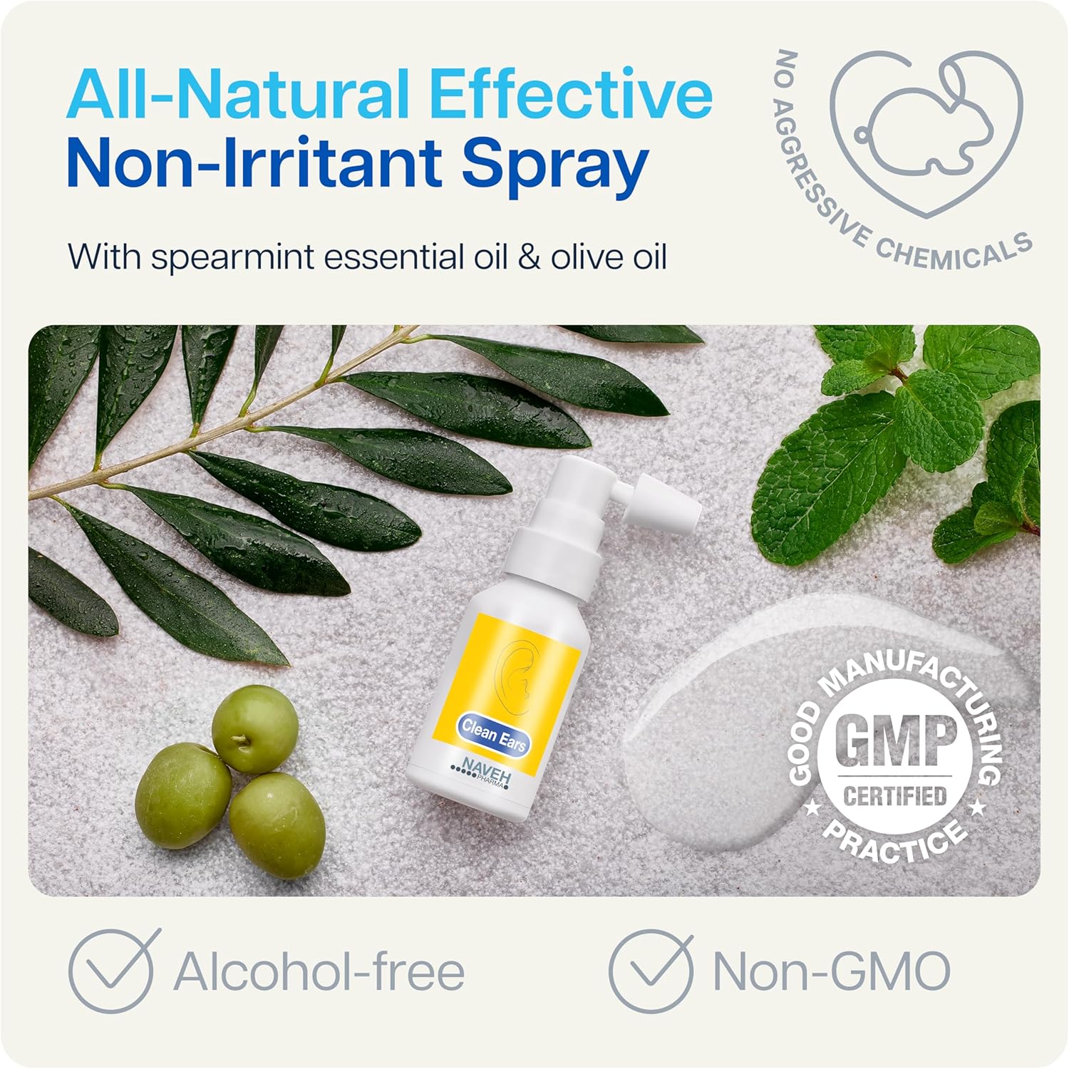 Non-Irritant Ear Wax Remover- All-Natural Ear Spray Composed Of A Unique Patented Complex Extracted From Natural Olive Oil And Contains Spearmint Essential Oil, Known For Its Antiseptic Properties And Fresh Odor. Cleanears Contains No Aggressive Solvents And No Chemicals That Can Aggravate Already Inflamed Skin In The Ear