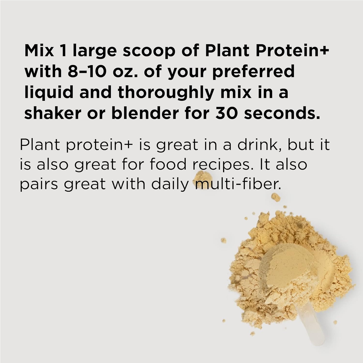 5 > Mix 1 large scoop of plant protein+ with 8-10 oz. of your preferred liquid and thoroughly mix in a shaker or blender for 30 seconds. For best results, use 2-3 times a day