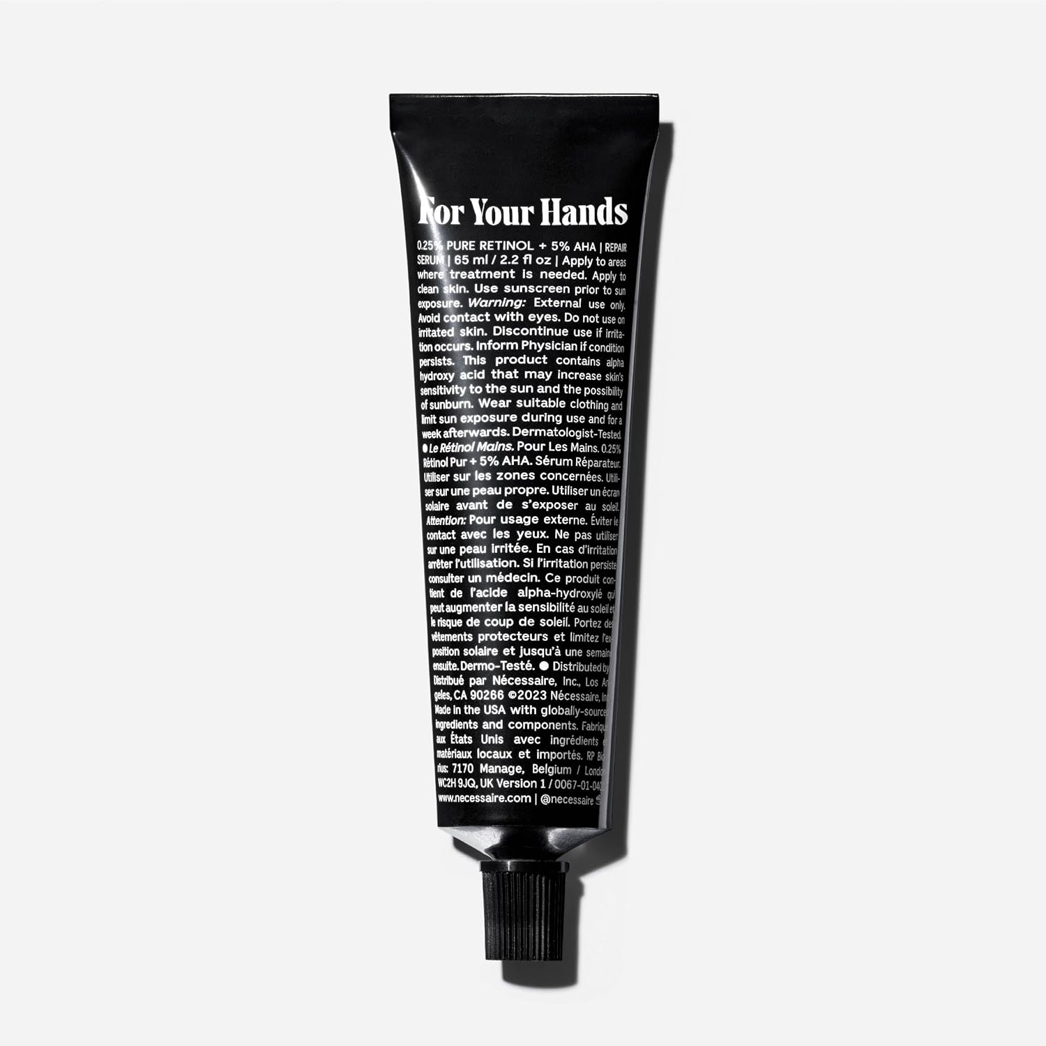 Nécessaire The Hand Retinol. Anti-Age Repair Serum. For Crepiness, Wrinkles, Spots, Brittle Cuticles. 0.25% Pure Retinol. 5% Aha. Dermatologist-Tested. Hypoallergenic. Non-Comedogenic