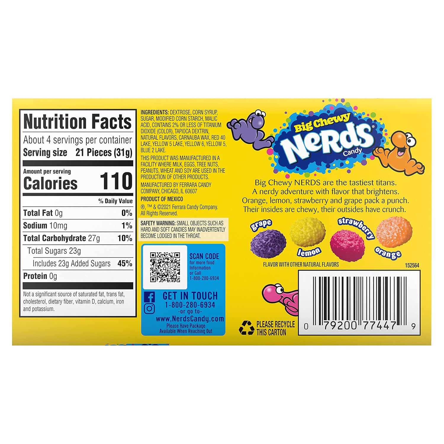 Tangy, Crunchy, And Chewy Movie Theater Candy — Small And Peculiarly Shaped Yet Lovably Packed With Taste And Heaped Onto A Delectable Soft Center. Big Chewy Nerds Candy Are Wildly Delicious Morsels And Are The Tastiest Tidbits. Orange, Lemon, Strawberry, And Grape Pack A Punch With A Crunchy Shell Outside With A Soft And Chewy Inside. Putting True Delicious Flavors Side By Side, Nerds Lets Candy Lovers Pour Out Of The Box A Candy Of Pure Delight. This Fun Box Packs Variety And Fuels Fun Well Beyond Snack Time, So What Are You Waiting For Haven’T We Told You Just Enough About Nerds Big Chewy Candy To Convince You To Treat Yourself Go Ahead!