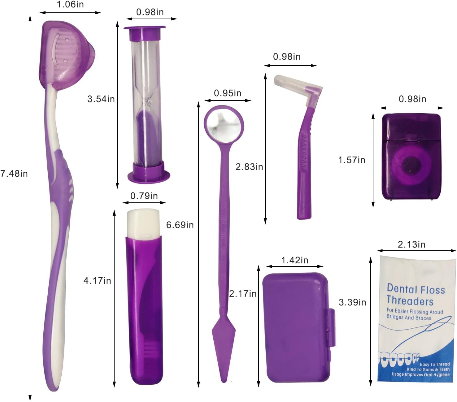 Net Bag Portable Orthodontic Care Kit Orthodontic Toothbrush Kit for Orthodontic Patient for Braces Travel Oral Care Kit Dental Travel Kit Interdental Brush Dental Wax Dental oss (8 Pcs/Pack)-Purple