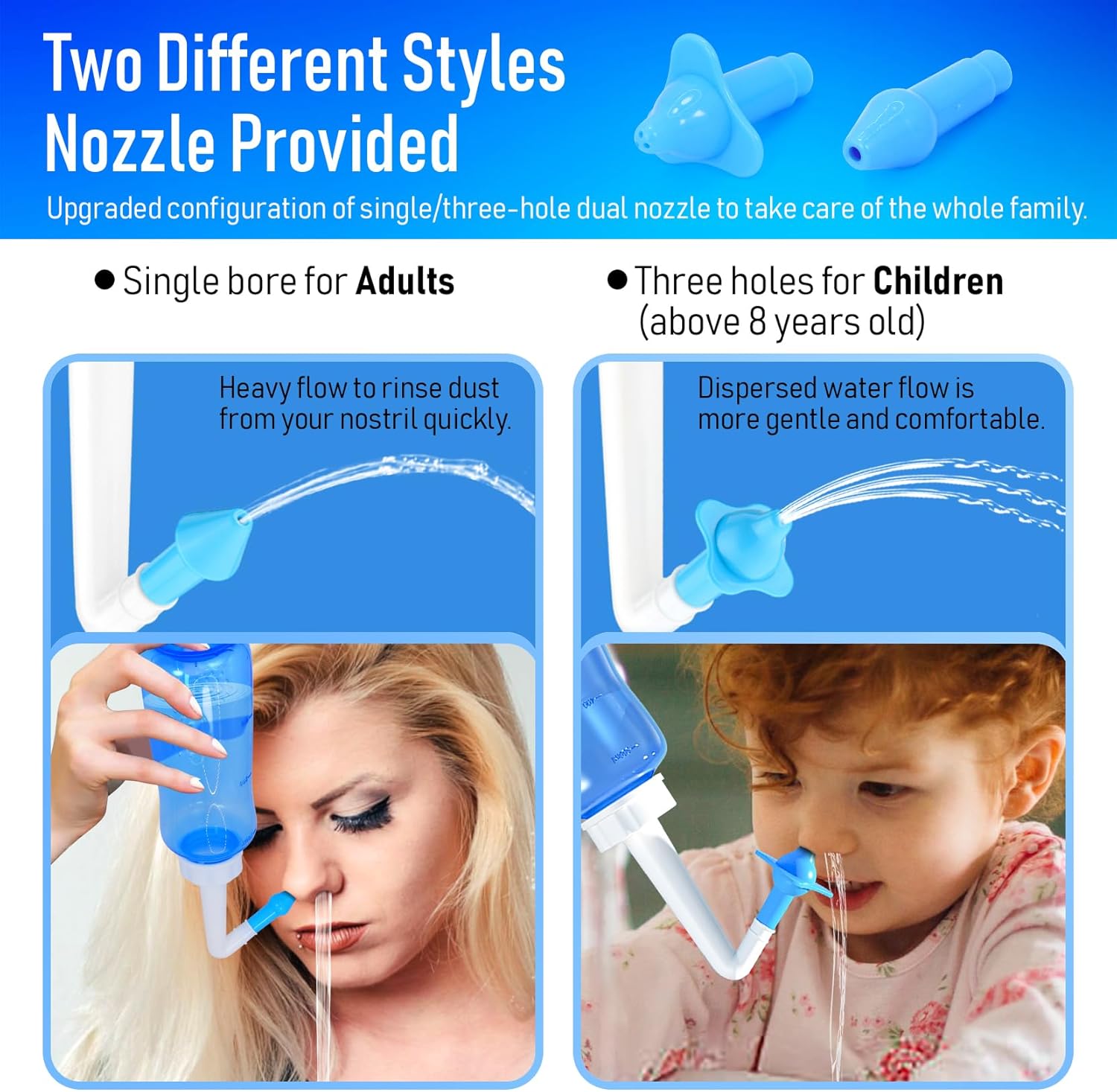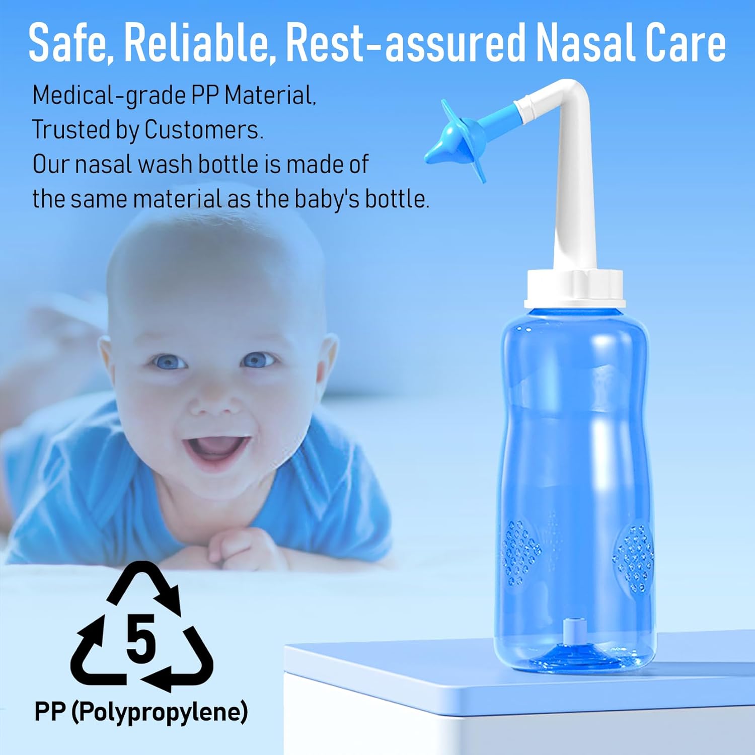 PROFESSIONAL DEISGN: Nasal wash bottle is designed according to the internal physiological structure of human nasal cavity, irrigating nasal passages and sinuses rinses out mucus and various irritants