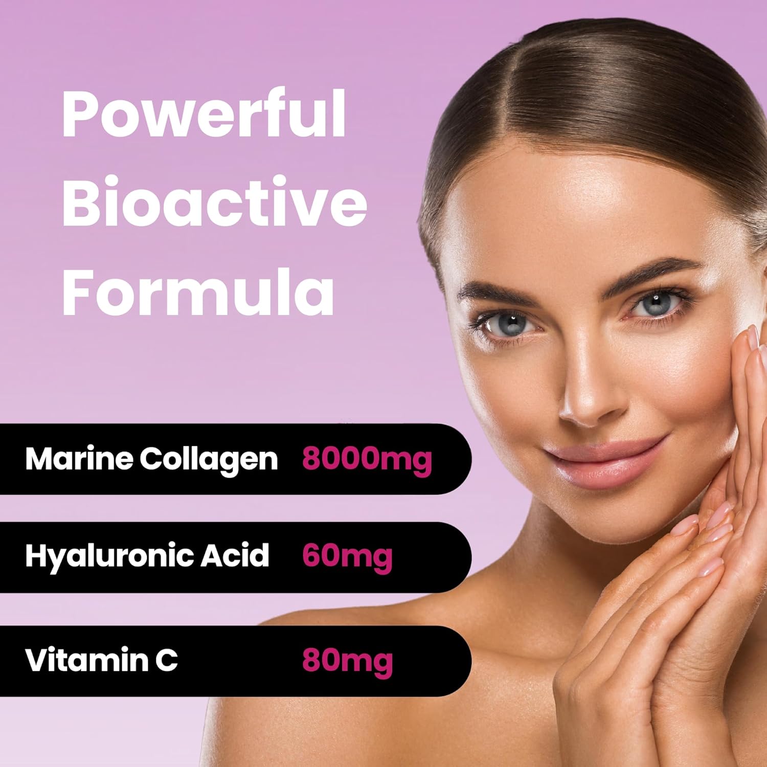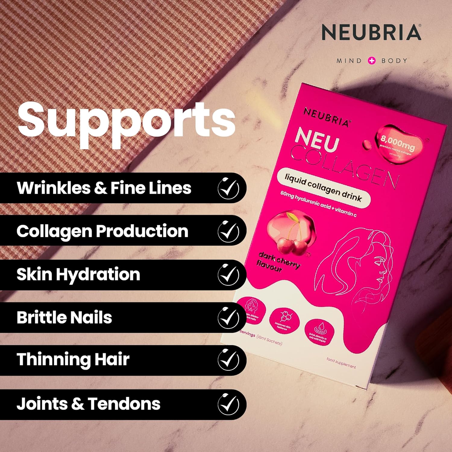 Neubria Marine Collagen 8000 Mg - Liquid Collagen Drink Hydrolysed Peptides With Hyaluronic Acid & Vitamin C For Hair Skin Nails Joints β 14 Sachets