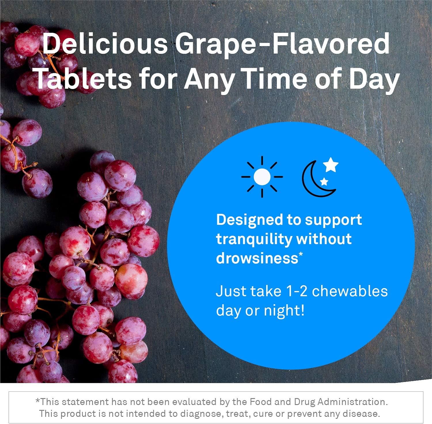 4 > Tranquility Without Drowsiness - These tablets are designed to be suitable for daytime or nighttime use, allowing for custom flexibility that works for every body. Chew 1-2 tablets up to three times daily or as directed by your healthcare provider