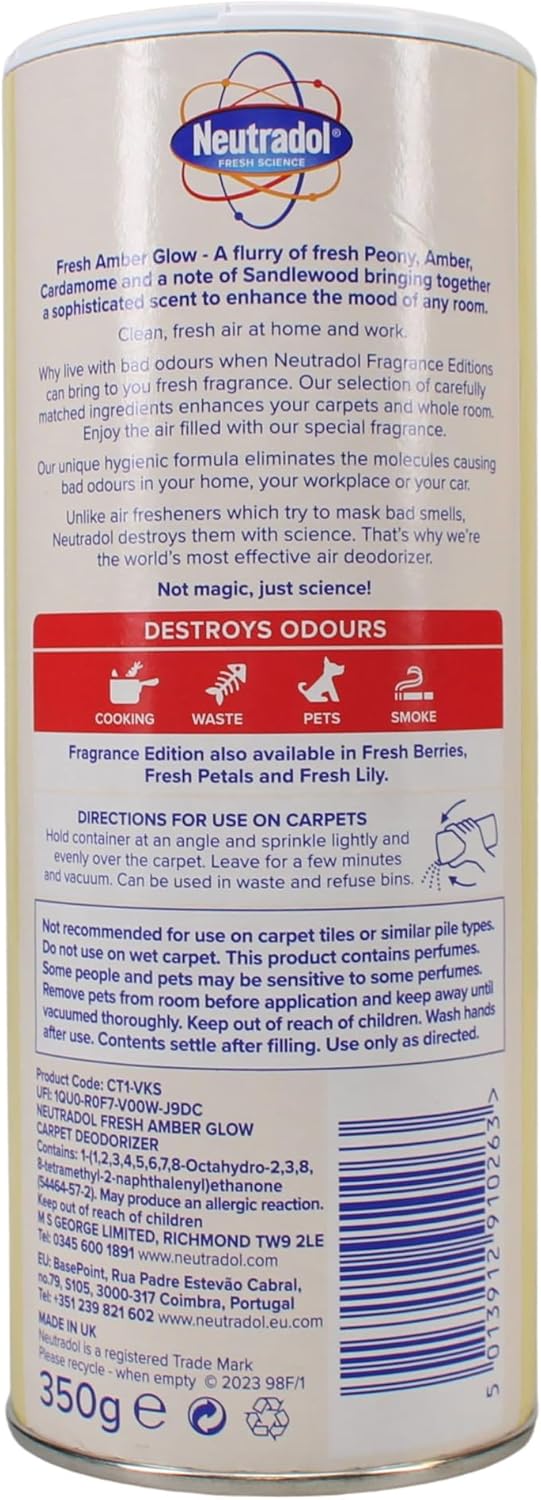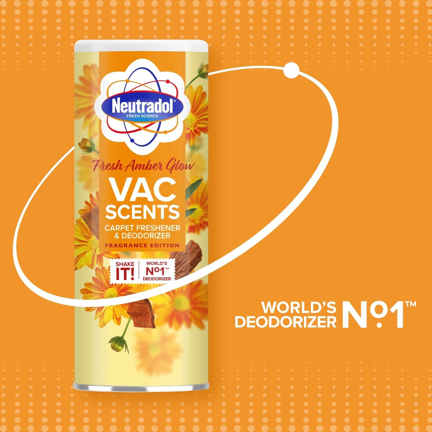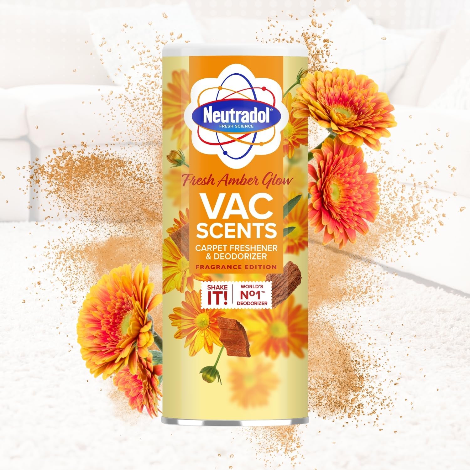 Neutradol Carpet Deodoriser, Vac Scents, Odour Neutraliser Powder For Carpets & Rugs, Fresh Amber Glow, Multipack Of 2 X 350G