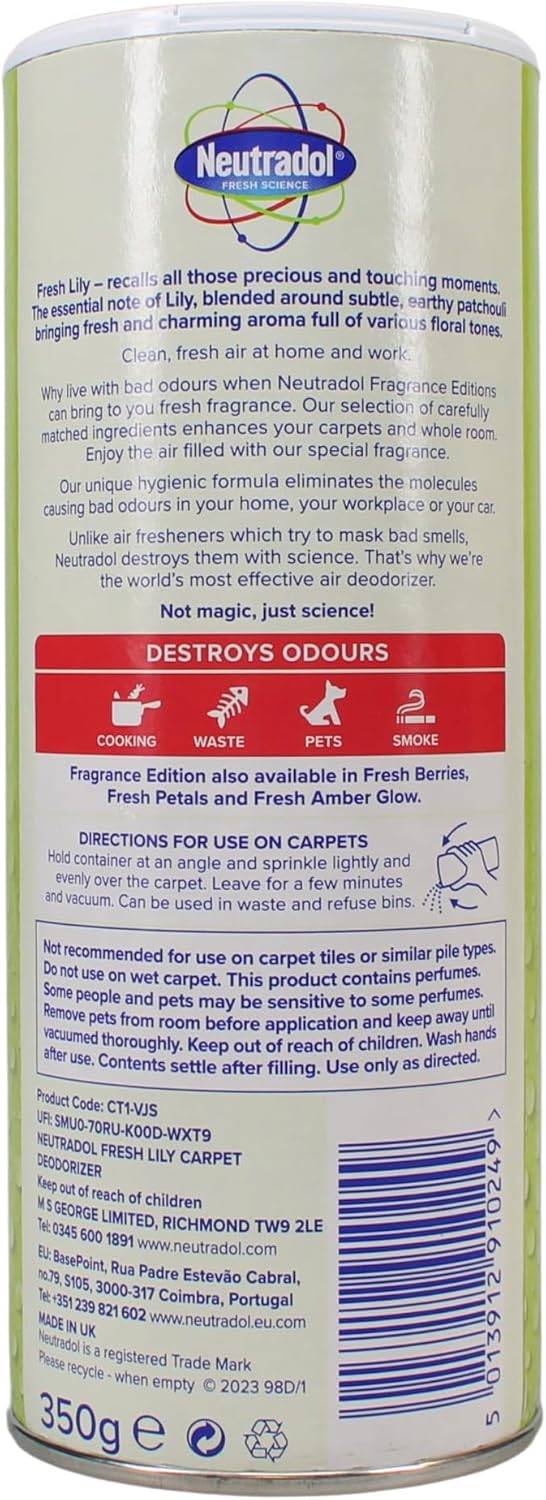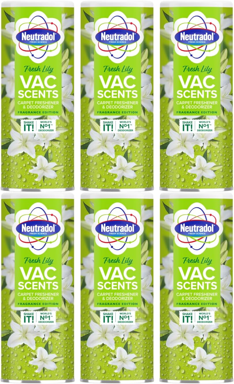 Neutradol Carpet Deodoriser, Vac Scents, Odour Neutraliser Powder For Carpets & Rugs, Fresh Lily, Multipack Of 6 X 350G