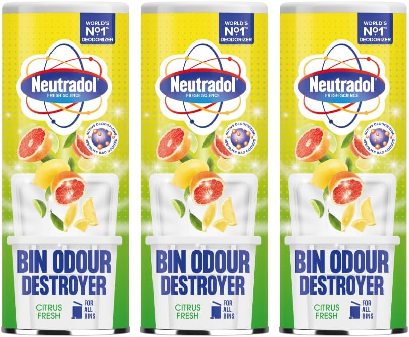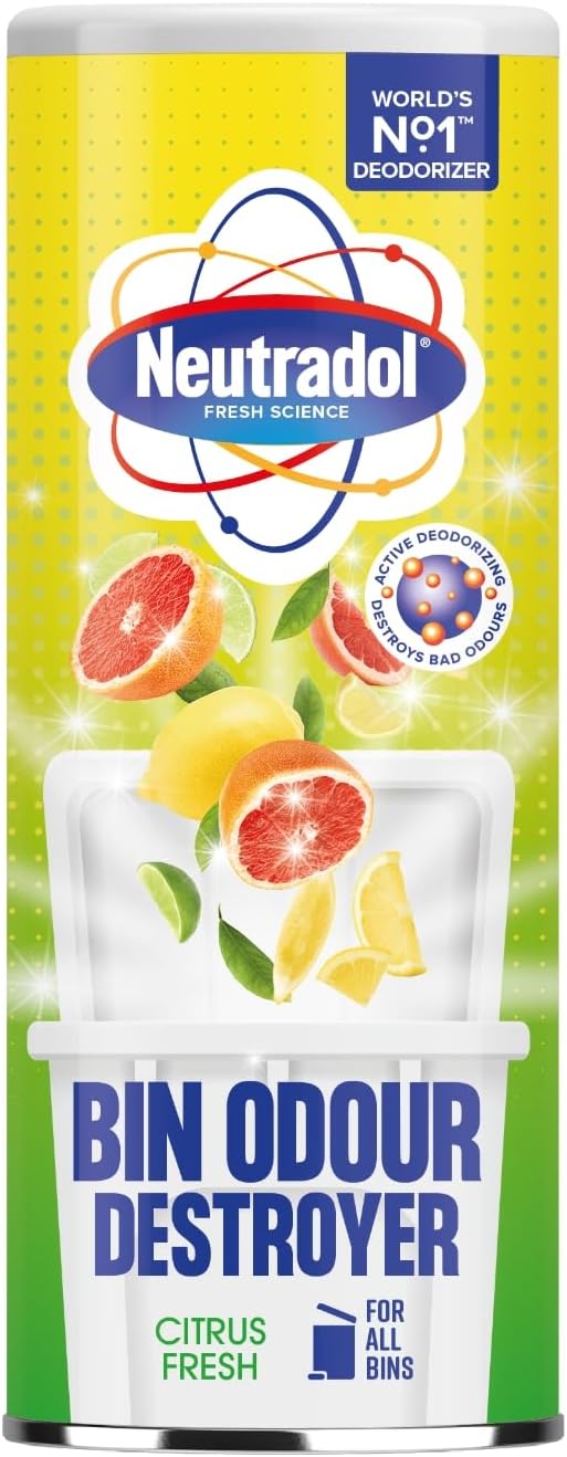 About this item Destroys Tough Bin Odours: Specially formulated to neutralise the household smells and general waste at their source without simply covering them up. Say goodbye to smelly bins, for good. Fresh Citrus Scent: Infused with the clean, uplifting fragrance of lemon and orange, this powder instantly refreshes your bin space with a light, zesty scent. Dry Powder Formula, No Mess, No Residue: Unlike wet sprays or gels, this fine powder leaves no sticky mess. Just sprinkle and shut the lid, leaving your bin clean, dry, and fresh. Fast-Acting & Long-Lasting: Works in seconds to neutralise odours, while its residual effect keeps your bin smelling fresh for longer, perfect for regular use between deep cleans. Perfect for Indoor & Outdoor Bins: Whether it's the kitchen bin or your outdoor wheelie bin, this effective formula is safe for use anywhere you need a burst of freshness › See more product details,Destroys Tough Bin Odours: Specially formulated to neutralise the household smells and general waste at their source without simply covering them up. Say goodbye to smelly bins, for good,Fresh Citrus Scent: Infused with the clean, uplifting fragrance of lemon and orange, this powder instantly refreshes your bin space with a light, zesty scent,Dry Powder Formula, No Mess, No Residue: Unlike wet sprays or gels, this fine powder leaves no sticky mess. Just sprinkle and shut the lid, leaving your bin clean, dry, and fresh,Fast-Acting & Long-Lasting: Works in seconds to neutralise odours, while its residual effect keeps your bin smelling fresh for longer, perfect for regular use between deep cleans,Perfect for Indoor & Outdoor Bins: Whether it's the kitchen bin or your outdoor wheelie bin, this effective formula is safe for use anywhere you need a burst of freshness
