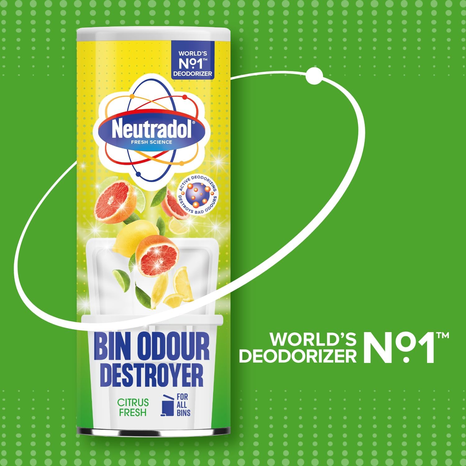 Neutradol Dustbin Odour Destroyer, Bin Freshener Deodorising Powder, Odour Eliminator For Indoor & Outdoor Bins, Citrus Fresh Multipack Of 3 X 350G