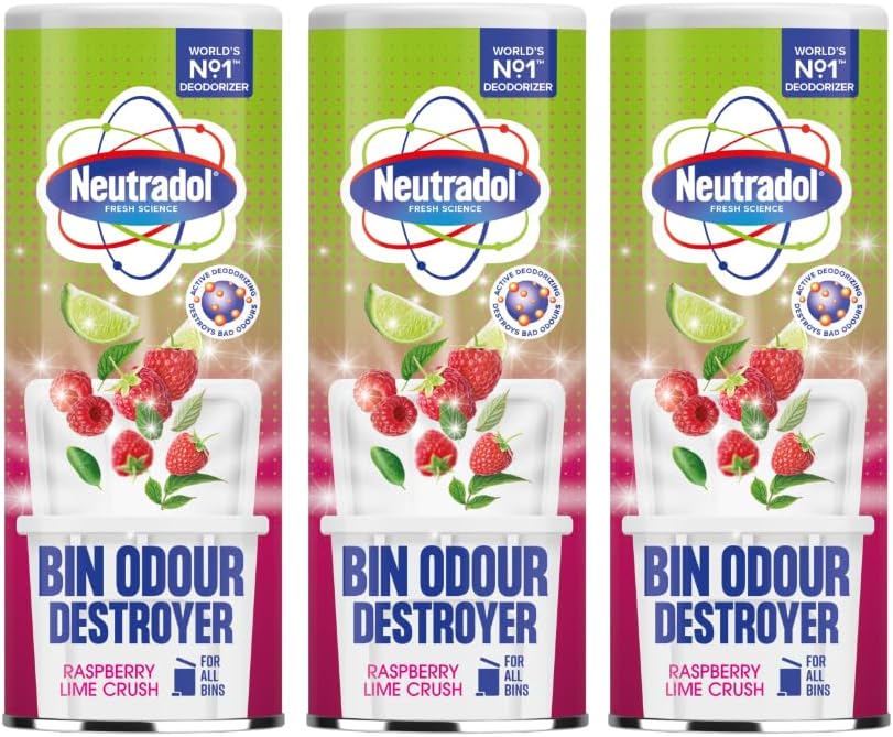 About this item Destroys Tough Bin Odours: Specially formulated to neutralise the household smells and general waste at their source without simply covering them up. Say goodbye to smelly bins, for good Raspberry Lime Scent: Infused with the clean, uplifting fragrance of Raspberry and Lime, this powder instantly refreshes your bin space with a zesty and fruity scent Dry Powder Formula, No Mess, No Residue: Unlike wet sprays or gels, this fine powder leaves no sticky mess. Just sprinkle and shut the lid, leaving your bin clean, dry, and fresh Fast-Acting & Long-Lasting: Works in seconds to neutralise odours, while its residual effect keeps your bin smelling fresh for longer, perfect for regular use between deep cleans Perfect for Indoor & Outdoor Bins: Whether it's the kitchen bin or your outdoor wheelie bin, this effective formula is safe for use anywhere you need a burst of freshness › See more product details,Destroys Tough Bin Odours: Specially formulated to neutralise the household smells and general waste at their source without simply covering them up. Say goodbye to smelly bins, for good,Raspberry Lime Scent: Infused with the clean, uplifting fragrance of Raspberry and Lime, this powder instantly refreshes your bin space with a zesty and fruity scent,Dry Powder Formula, No Mess, No Residue: Unlike wet sprays or gels, this fine powder leaves no sticky mess. Just sprinkle and shut the lid, leaving your bin clean, dry, and fresh,Fast-Acting & Long-Lasting: Works in seconds to neutralise odours, while its residual effect keeps your bin smelling fresh for longer, perfect for regular use between deep cleans,Perfect for Indoor & Outdoor Bins: Whether it's the kitchen bin or your outdoor wheelie bin, this effective formula is safe for use anywhere you need a burst of freshness
