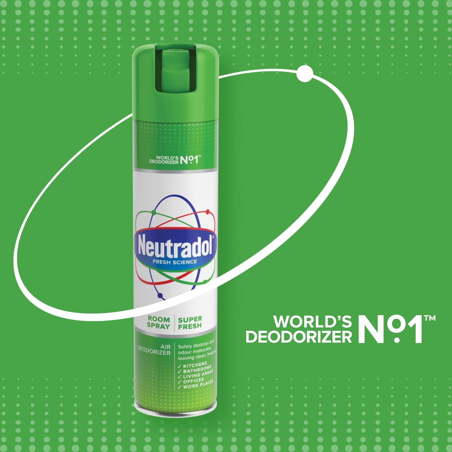 About this item Instant Odour Elimination: Neutralises unpleasant odours on contact, whether from food, pets, smoke, or bins. No masking with heavy fragrances, just fast and effective freshness. Scientifically Proven Formula: Developed with over 50 active ingredients, Neutradol’s formula actively breaks down and neutralises odour molecules at the source leaving behind truly clean, breathable air. Versatile for Any Room: From bathrooms and kitchens to hallways, offices, and pet areas, this powerful aerosol is perfect for instantly refreshing any space in your home or workplace. Naturally Fresh Scent: Infused with a clean, crisp scent that uplifts your space without overwhelming it. Easy to Use Spray: Designed for convenience and control. A few quick bursts are all it takes to provide long lasting freshness, whenever and wherever you need it. › See more product details,Instant Odour Elimination: Neutralises unpleasant odours on contact, whether from food, pets, smoke, or bins. No masking with heavy fragrances, just fast and effective freshness,Scientifically Proven Formula: Developed with over 50 active ingredients, Neutradol’s formula actively breaks down and neutralises odour molecules at the source leaving behind truly clean, breathable air,Versatile for Any Room: From bathrooms and kitchens to hallways, offices, and pet areas, this powerful aerosol is perfect for instantly refreshing any space in your home or workplace,Naturally Fresh Scent: Infused with a clean, crisp scent that uplifts your space without overwhelming it,Easy to Use Spray: Designed for convenience and control. A few quick bursts are all it takes to provide long lasting freshness, whenever and wherever you need it