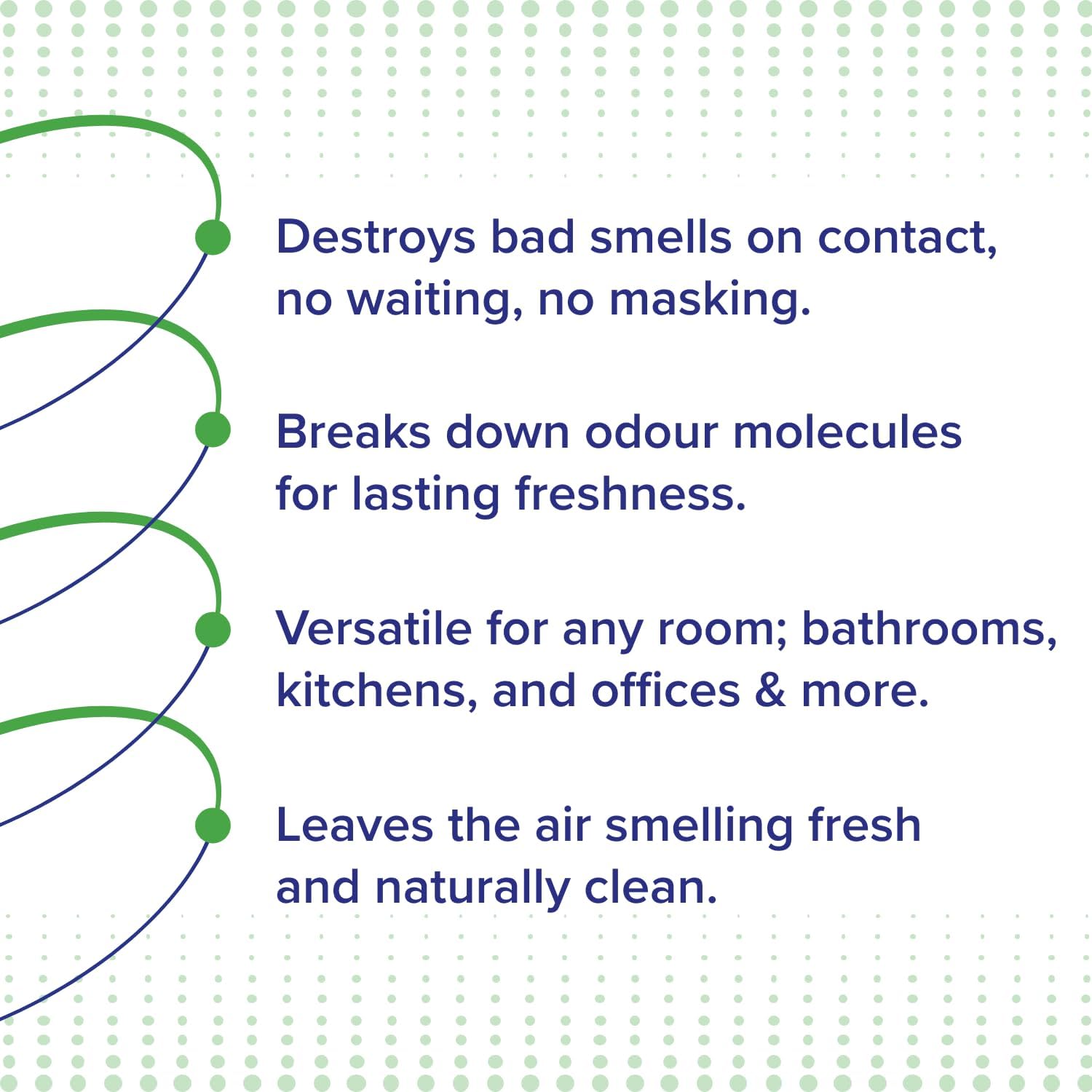 About The Product : Instant Odour Elimination: Neutralises unpleasant odours on contact, whether from food, pets, smoke, or bins. No masking with heavy fragrances, just fast and effective freshness