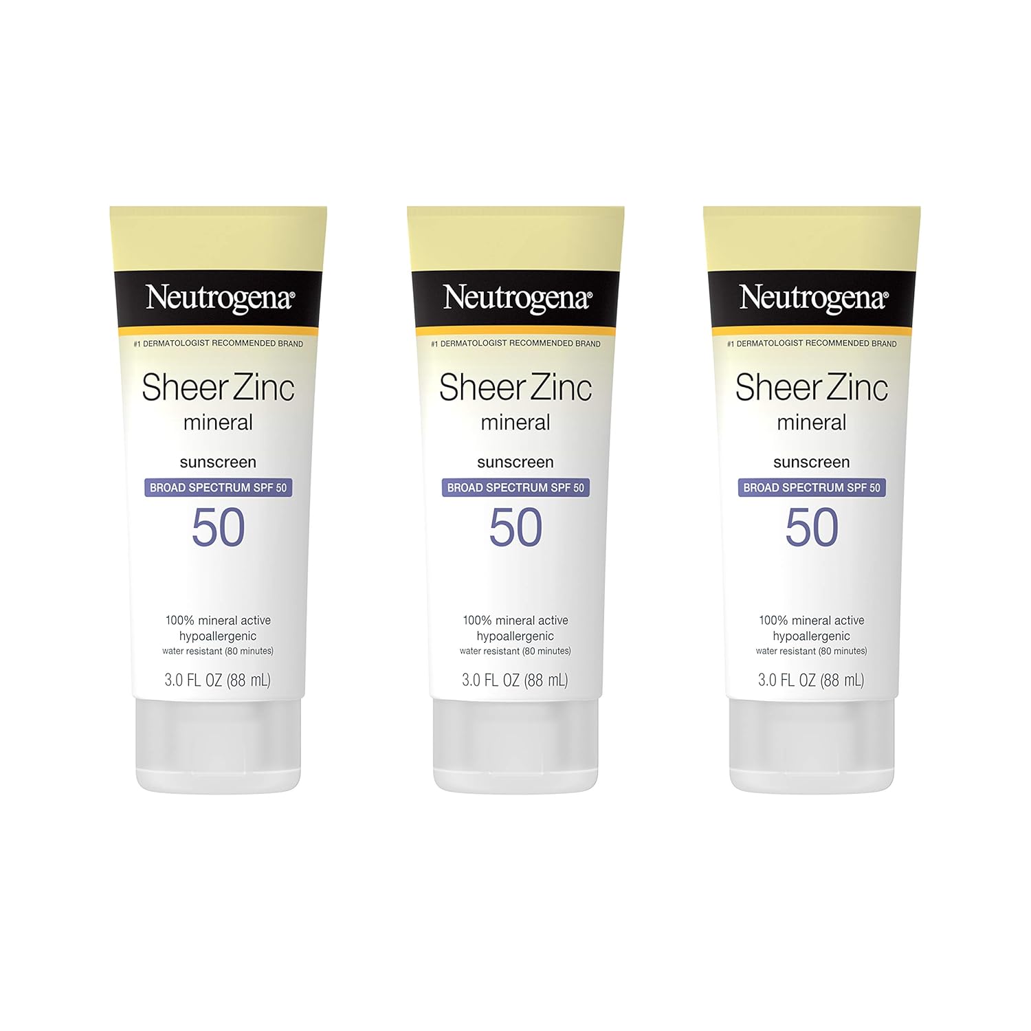 Neutrogena Sheer Zinc Oxide Dry-Touch Mineral Sunscreen Lotion, Broad Spectrum Spf 50 Uva/Uvb Protection, Water-Resistant, Hypoallergenic And Non-Greasy, Paraben-Free, 3 Fl. Oz, Pack Of 3