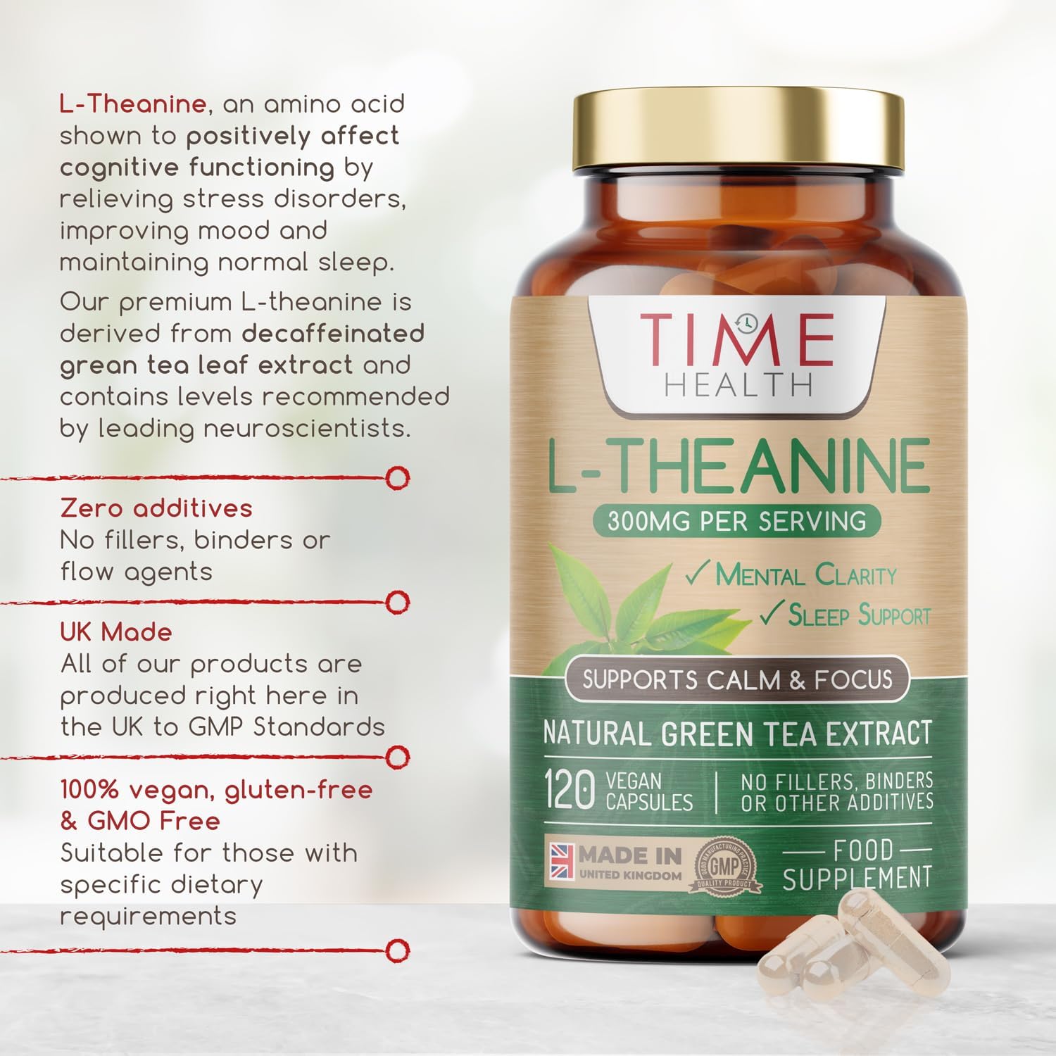 New: L-Theanine - Natural Green Tea Extract (Decaf) - 120 Capsules - 300Mg L-Theanine Per Serving - Sleep & Relaxation Support - Mental Clarity - Non-Synthetic Theanine - Uk Made - Zero Additives