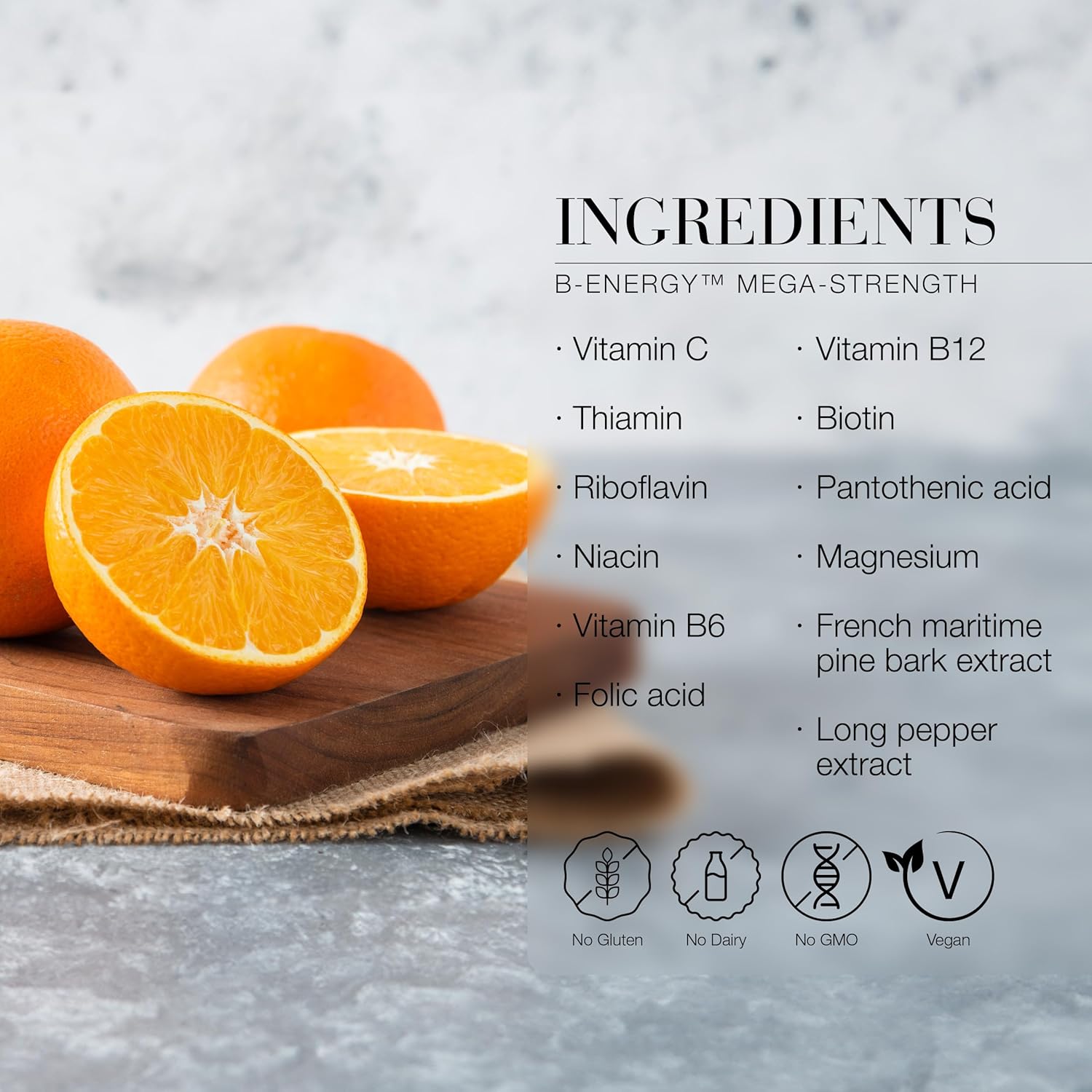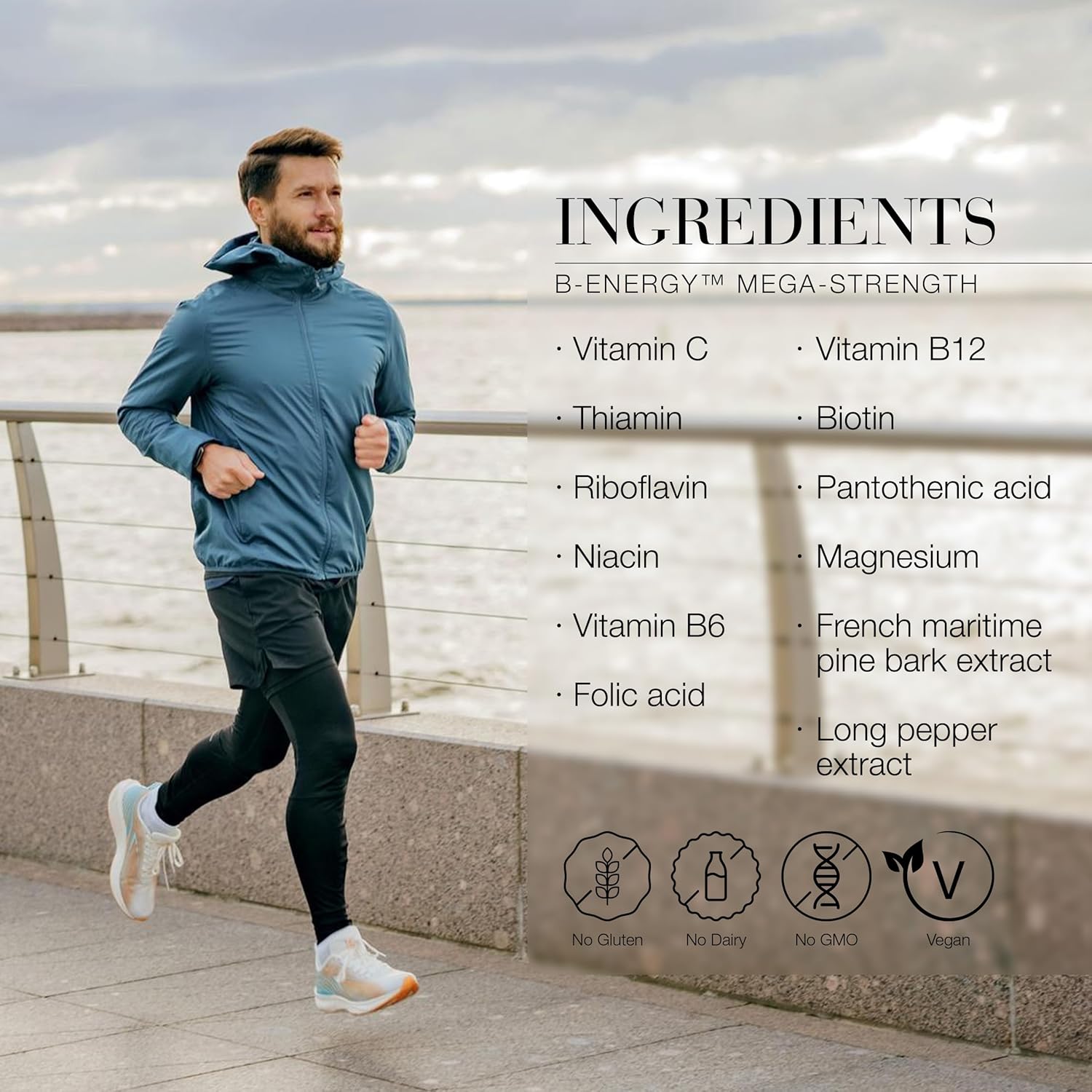 New Nordic B-Energy Mega Strength Vitamin B Complex 60 Pack - Dairy And Gluten Free - Vegan Supplements - Multi Vitamins For Tiredness And Fatigue