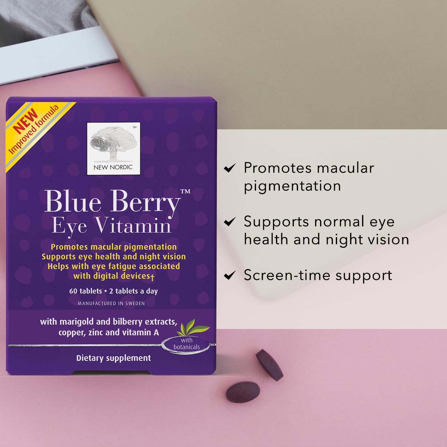 New Nordic Blue Berry Eye Vitamin | Eye & Vision Support Supplement | Lutein & Bilberry | Swedish Made | 60 Count (Pack Of 1)