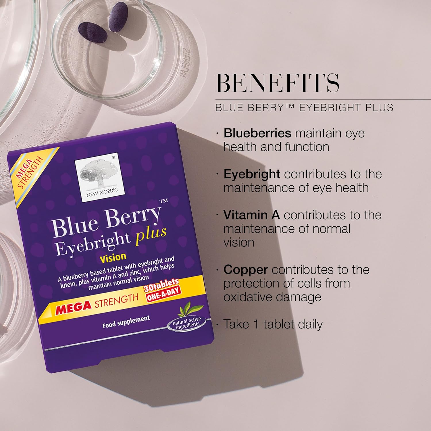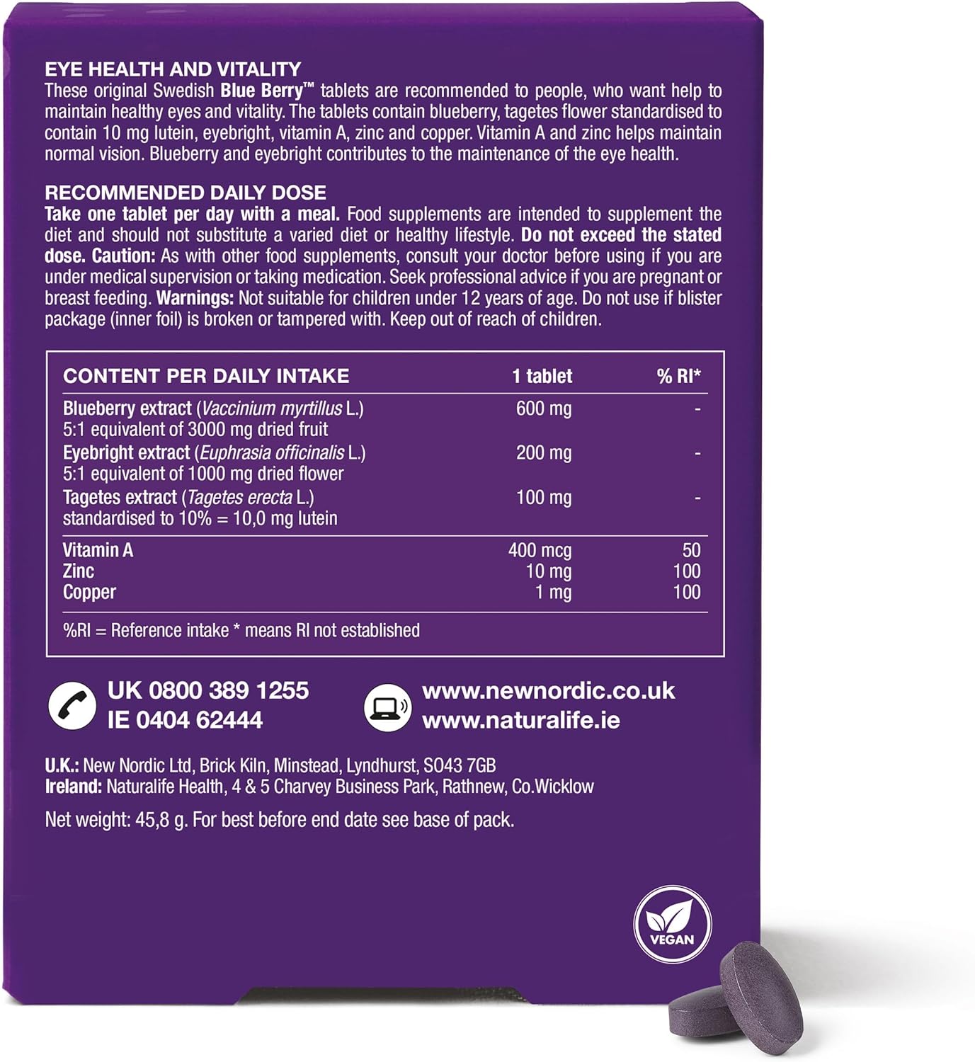 New Nordic Blue Berry Eyebright - Natural Eye & Vision Care Supplement - 10 Mg Lutein Maintains Healthy Eyes - 60 Tablets
