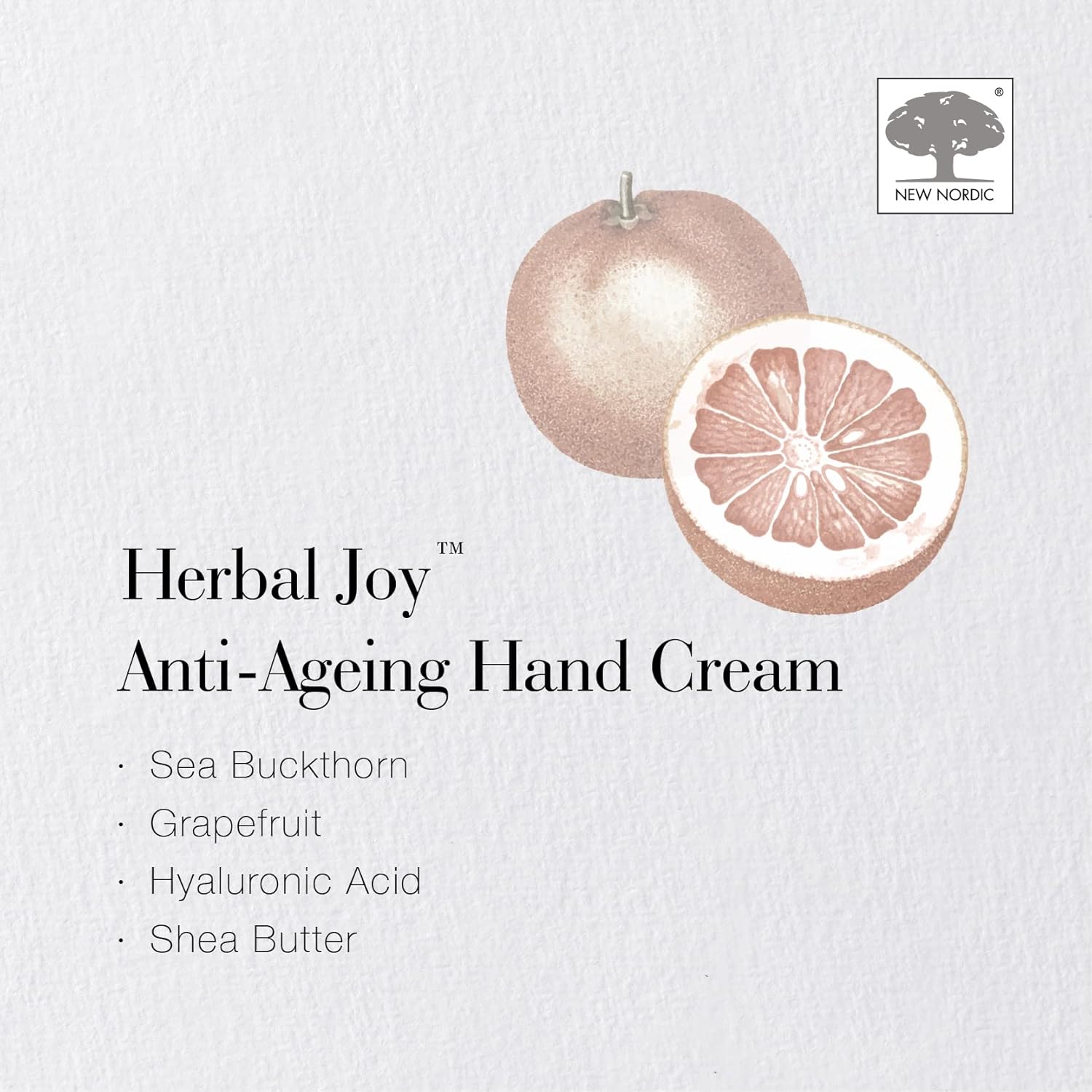 New Nordic Herbal Joy Anti-Ageing Hand Cream With Shea Butter & Ceramosides - Fast-Absorbing Nourishment For Dry Skin Relief - 75Ml