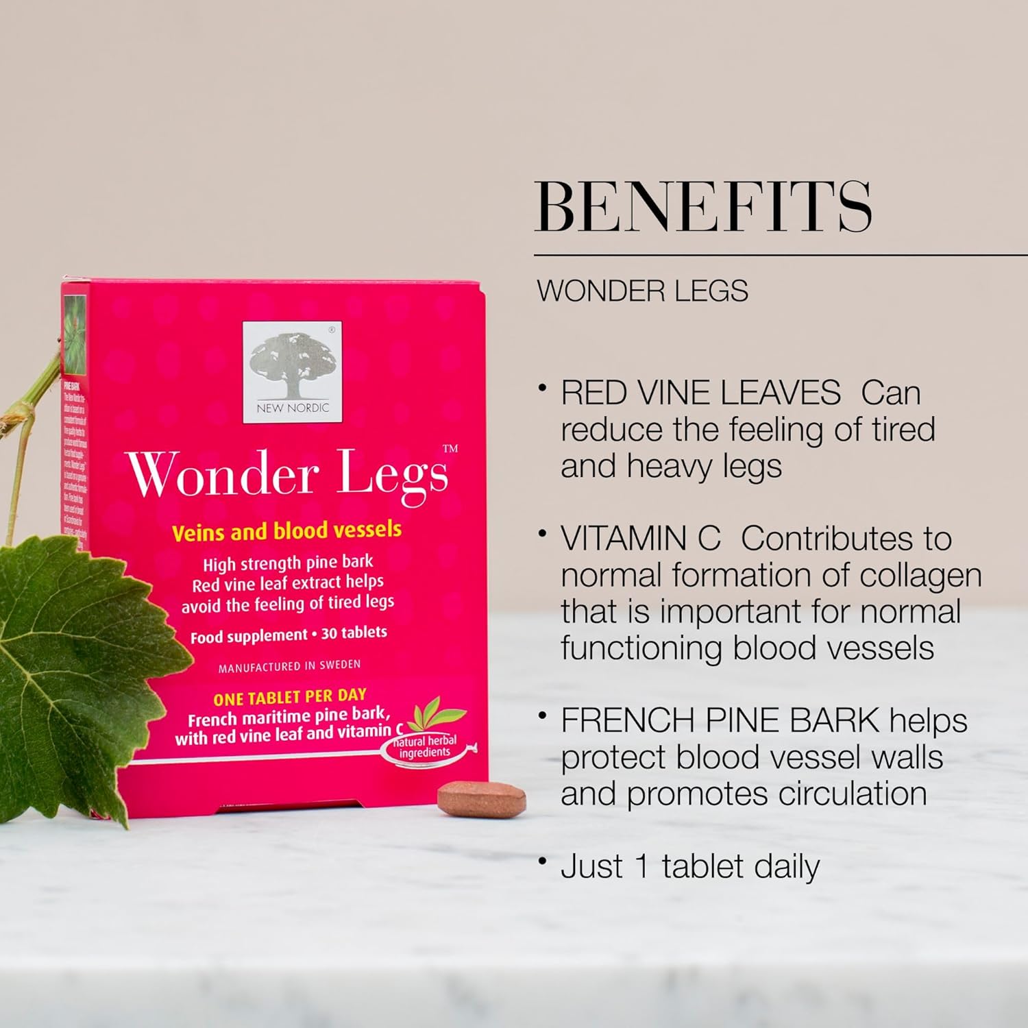 New Nordic Wonder Legs - High Strength Pine Bark Extract - Help Avoid Feeling Of Tired Legs - Helps Maintain Normal Circulation - 30 Tablets