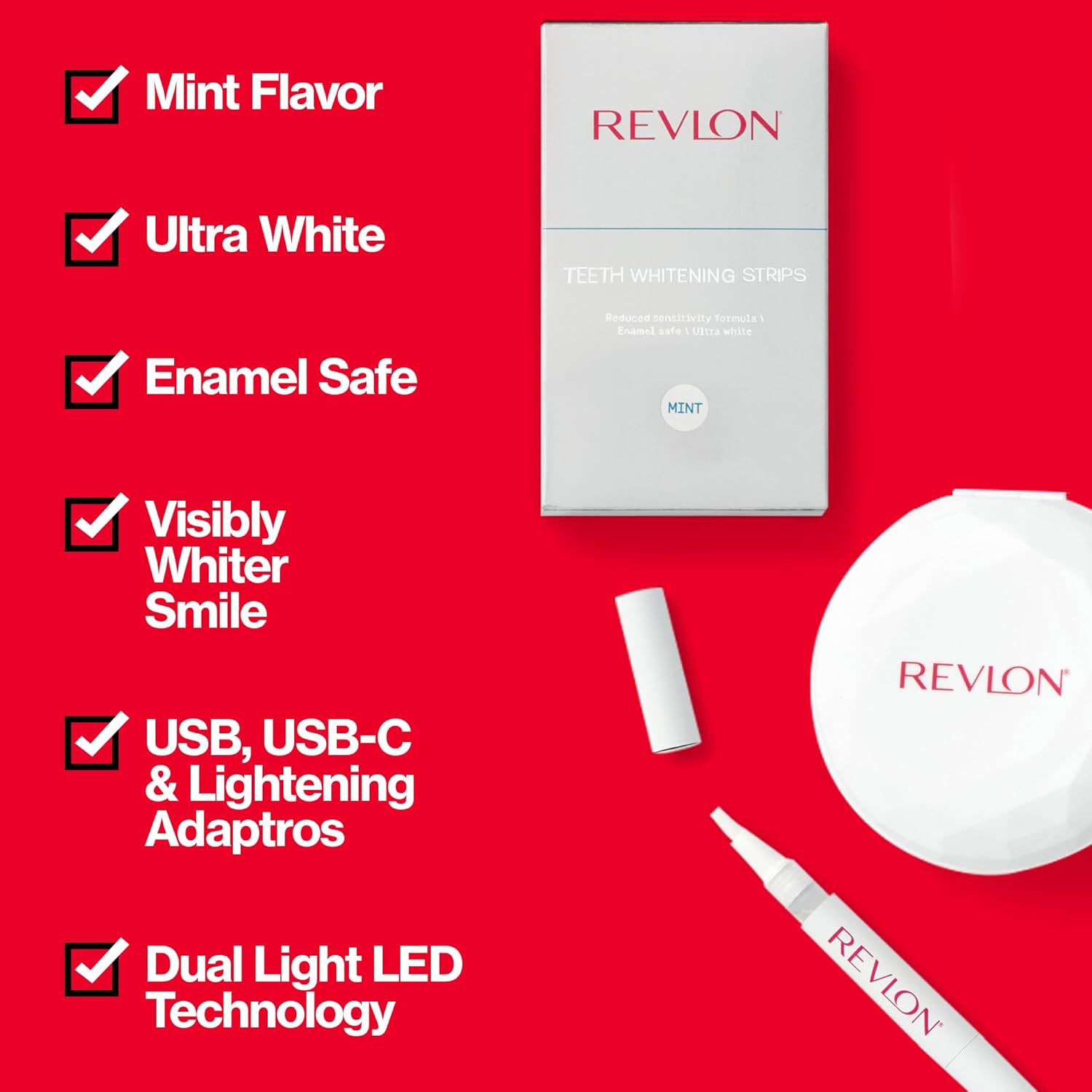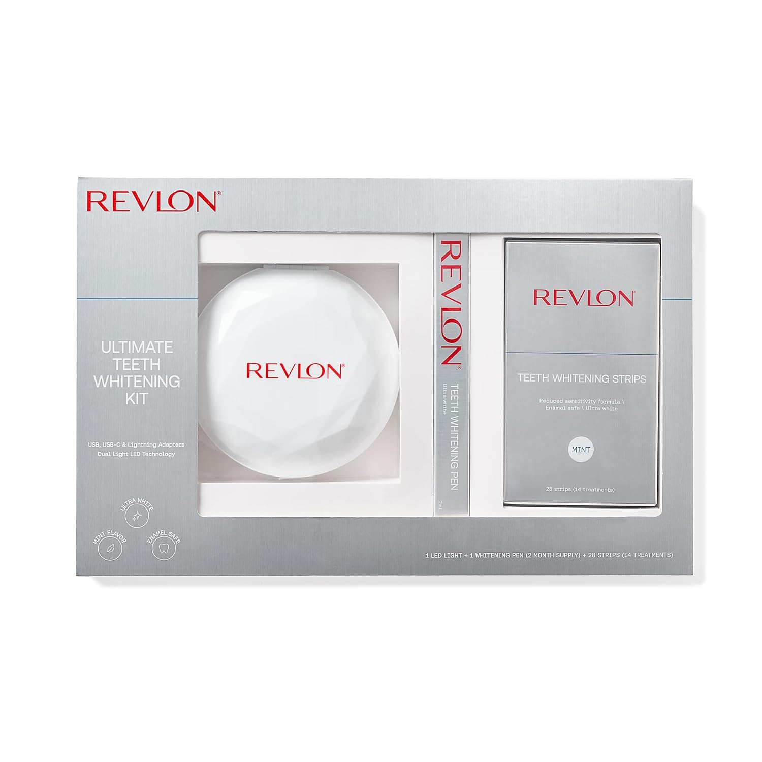 New Revlon Ultimate Teeth Whitening Kit | 1 Led Light, 1 Teeth Whitening Pen, And 1 Box Of Teeth Whitening Strips | Mobile-Friendly Led Light, Quick Whitening In 16 Minutes | Usb And Usb-C Compatible