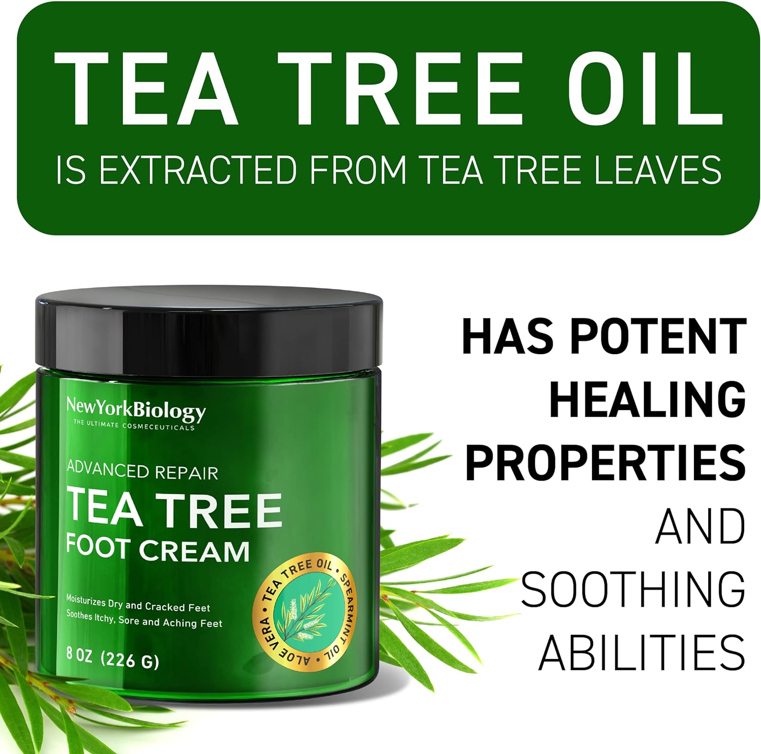 New York Biology Tea Tree Oil Foot Cream For Dry Cracked Feet, Athletes Foot, Nail Fungus, Jock Itch, Ringworm, Cracked Heels And Itchy Skin – Pain Relieving Foot Cream - 226 G