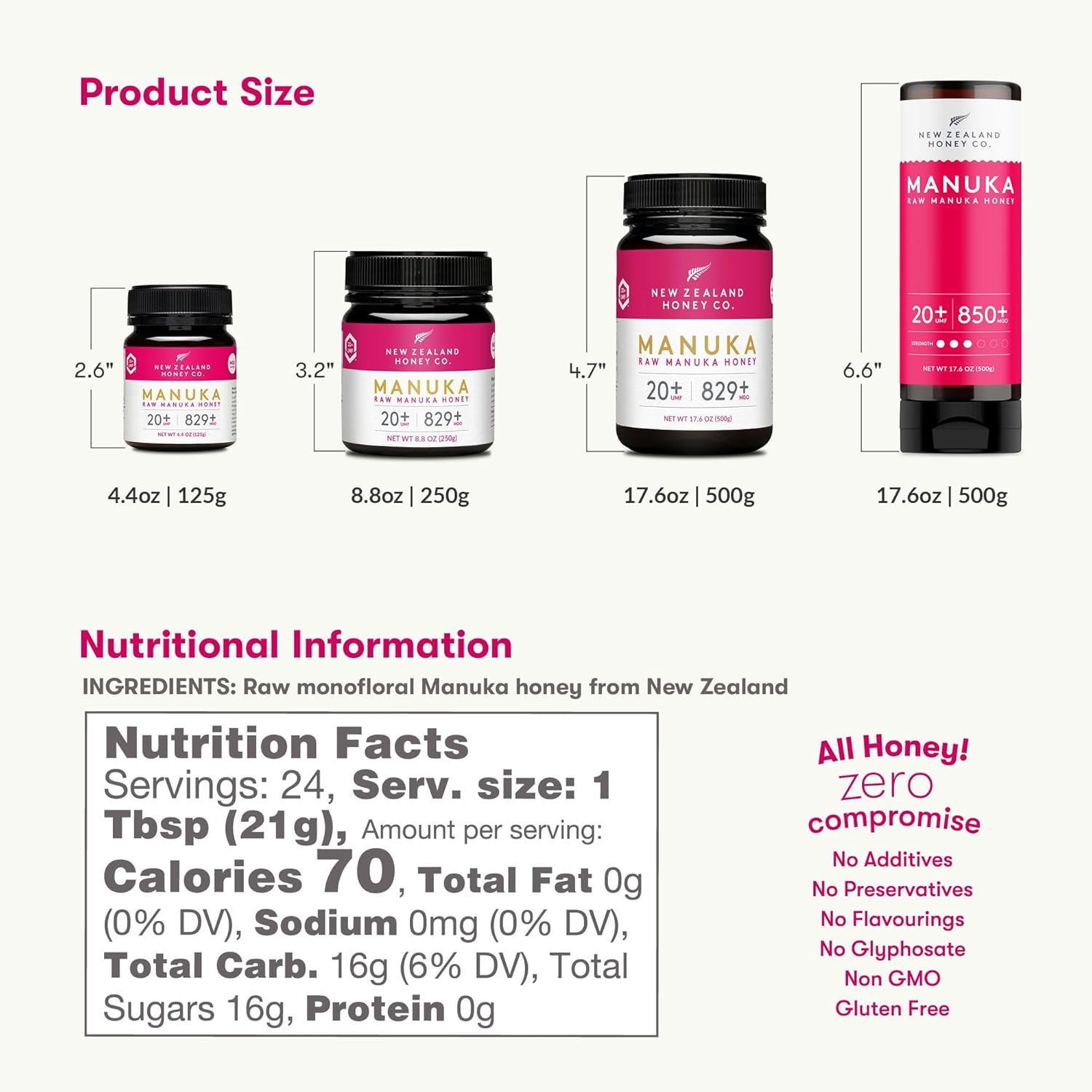 New Zealand Honey Co. Pure Manuka Honey Umf 20+ Squeezy | 500G | 17.6Oz | Squeezable Umf Manuka Honey