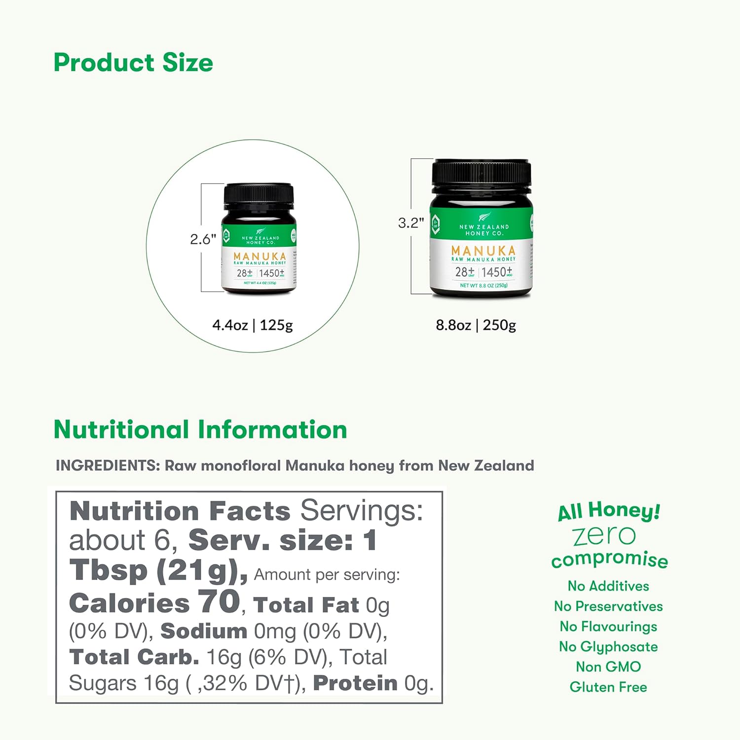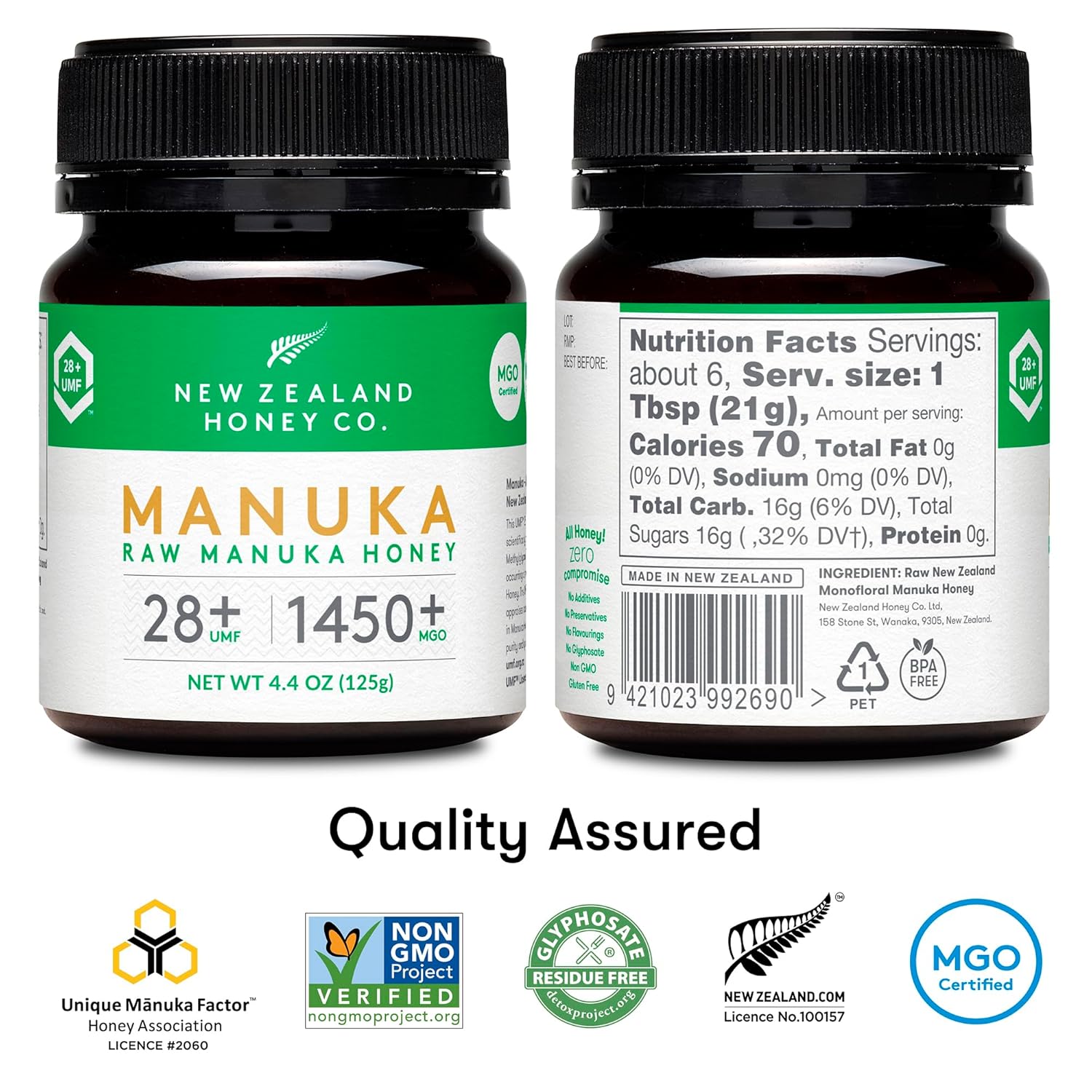 New Zealand Honey Co. Raw Manuka Honey Umf 28+ | Mgo 1450+, Umf Certified / 4.4Oz