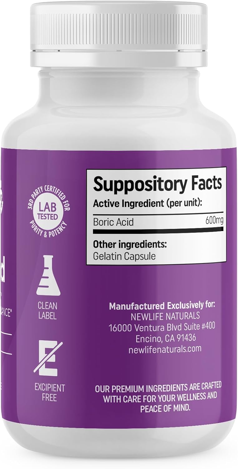 Introducing Newlife Naturals' 600Mg Boric Suppositories, Your Key To Rediscovering Natural Ph Balance And Feminine Well-Being.Our Medical-Grade Capsules, Crafted With Pure Boric Acid Powder And Free From Fillers, Are A Testament To Our Commitment To Quality And Your Vaginal Health. Empower Yourself With Our 600Mg Boric Acid Capsules, Thoughtfully Designed To Maintain Women'S Ph Balance. Embrace A Renewed Sense Of Equilibrium And Confidence In Your Intimate Health. Immerse Yourself In The Purity Of Our Boric Acid Powder, Meticulously Formulated Without Any Fillers. These Suppositories Act As Your Defense Against Vaginal Odor And Discomfort. Ideal For Those Seeking Alternative Support, Our Capsules Provide Holistic Feminine Health Maintenance, Making Sure You Feel Your Best Every Day. Legal Disclaimer: Not Evaluated By The Fda. Intended For Feminine Care; Does Not Treat, Cure, Or Prevent Specific Conditions