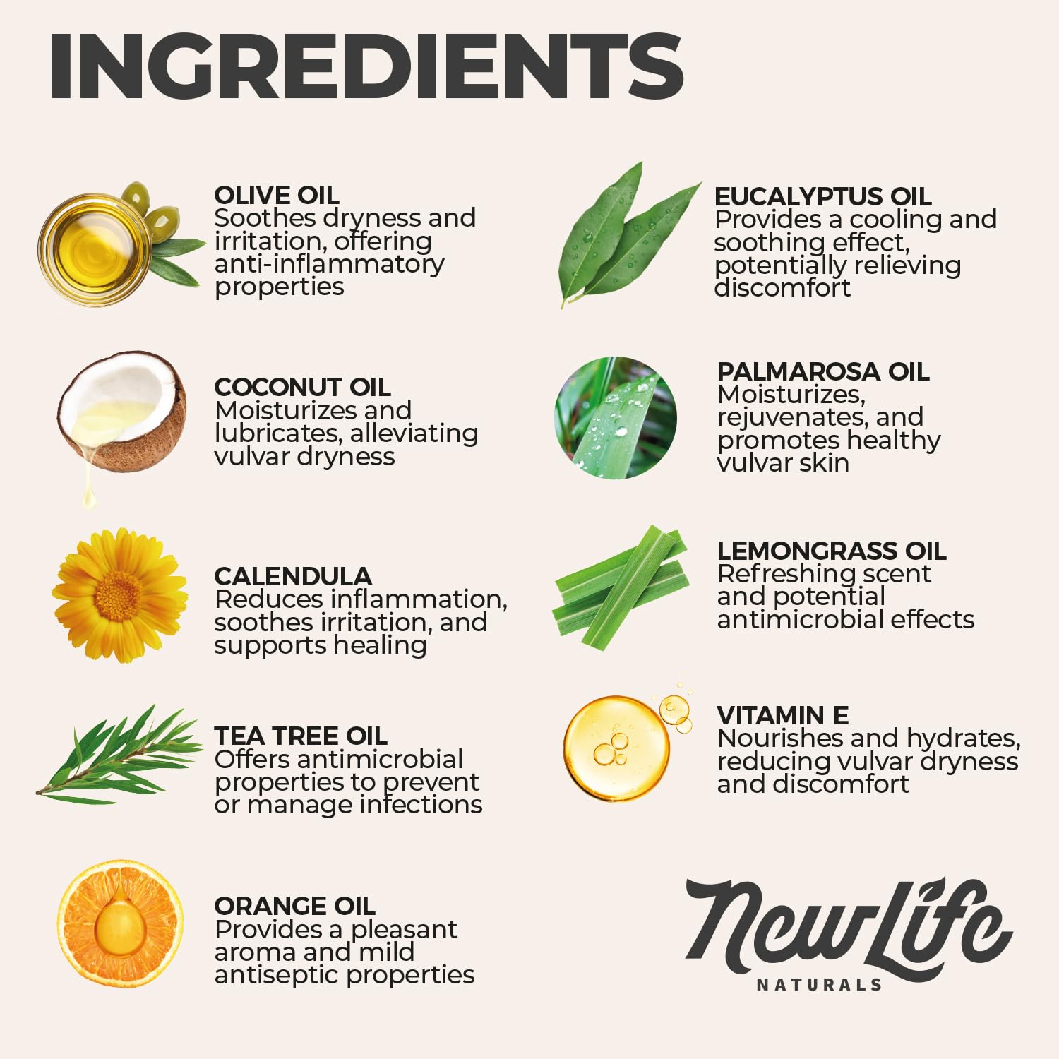 Newlife Naturals Menopause Support Deodorant Vulva Spray For Itching, Irritation, And Vaginal Dryness - Intimate Feminine Moisturizer Oil With Olive Oil, Lemongrass And More - Ph Balance 2 Oz