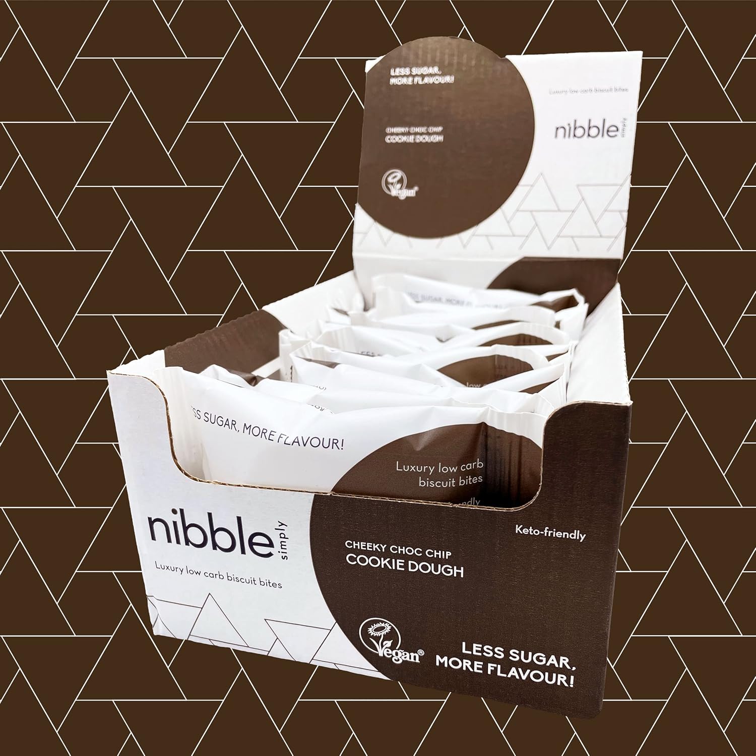Nibble Simply Cheeky Choc Chip Cookie Dough - Low Carb, Lower Sugar, Keto, Vegan (12 X 36G Packs)