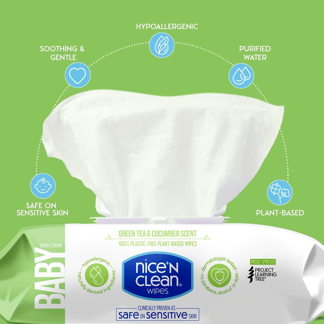 Clinically Proven: Nice ‘N Clean Green Tea & Cucumber Skin Care Baby Wipes Are Clinically Proven As Safe On Sensitive Skin. Trust These Ph-Balanced Hypoallergenic Wipes For Gentle One-Step Cleansing And Moisturizing!