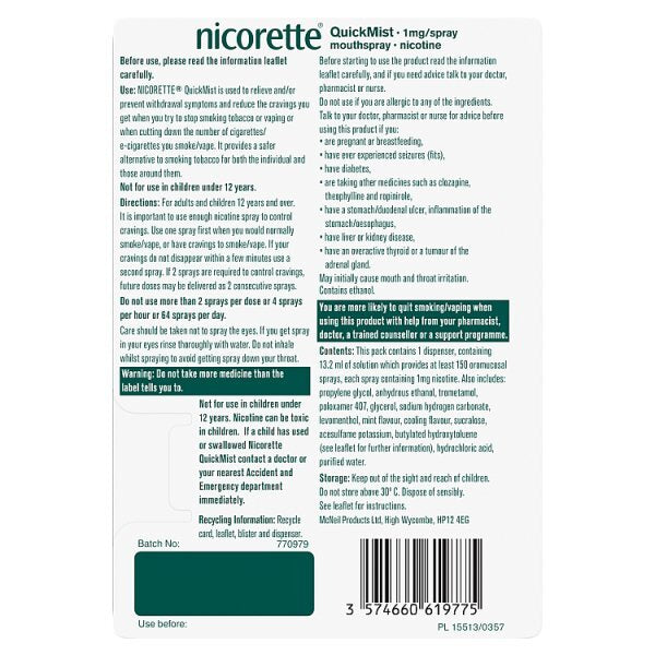 Nicorette® Quickmist 1Mg Nicotine Mouthspray (Stop Smoking)