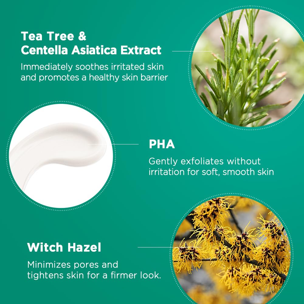 About this item [Instant Relief for Sensitive Skin] Infused with tea tree, centella asiatica, and houttuynia cordata extracts known for their exceptional soothing properties, this formula quickly calms irritated and sensitive skin, providing gentle care even for problematic skin. [Pore Tightening & Skin Smoothing] Formulated with naturally derived PHA known for its gentle exfoliating and moisturizing properties, this product ensures safe care for sensitive skin. Witch hazel extract helps tighten enlarged pores, leaving the skin firm and refined. [Large Double-Sided VEGAN PAD] Large 7cm double-sided vegan pads with 220 embossed textures help clear pore impurities. These pads are vegan-certified, fluorescent brightener-free, and SGS certified, making them safe even for sensitive skin. [Safe for Sensitive Skin & Clean Beauty] Alcohol-free, allergen-free, fragrance-free, paraben-free, sulfate-free, and cruelty-free, this formula is suitable for sensitive skin. All ingredients are EWG green grade, clinically tested for safety. Uses sustainable packaging featuring soybean oil ink and easy-to-remove labels to reduce environmental impact. › See more product details,[Instant Relief for Sensitive Skin] Infused with tea tree, centella asiatica, and houttuynia cordata extracts known for their exceptional soothing properties, this formula quickly calms irritated and sensitive skin, providing gentle care even for problematic skin,[Pore Tightening & Skin Smoothing] Formulated with naturally derived PHA known for its gentle exfoliating and moisturizing properties, this product ensures safe care for sensitive skin. Witch hazel extract helps tighten enlarged pores, leaving the skin firm and refined,[Large Double-Sided VEGAN PAD] Large 7cm double-sided vegan pads with 220 embossed textures help clear pore impurities. These pads are vegan-certified, fluorescent brightener-free, and SGS certified, making them safe even for sensitive skin,[Safe for Sensitive Skin & Clean Beauty] Alcohol-free, allergen-free, fragrance-free, paraben-free, sulfate-free, and cruelty-free, this formula is suitable for sensitive skin. All ingredients are EWG green grade, clinically tested for safety. Uses sustainable packaging featuring soybean oil ink and easy-to-remove labels to reduce environmental impact