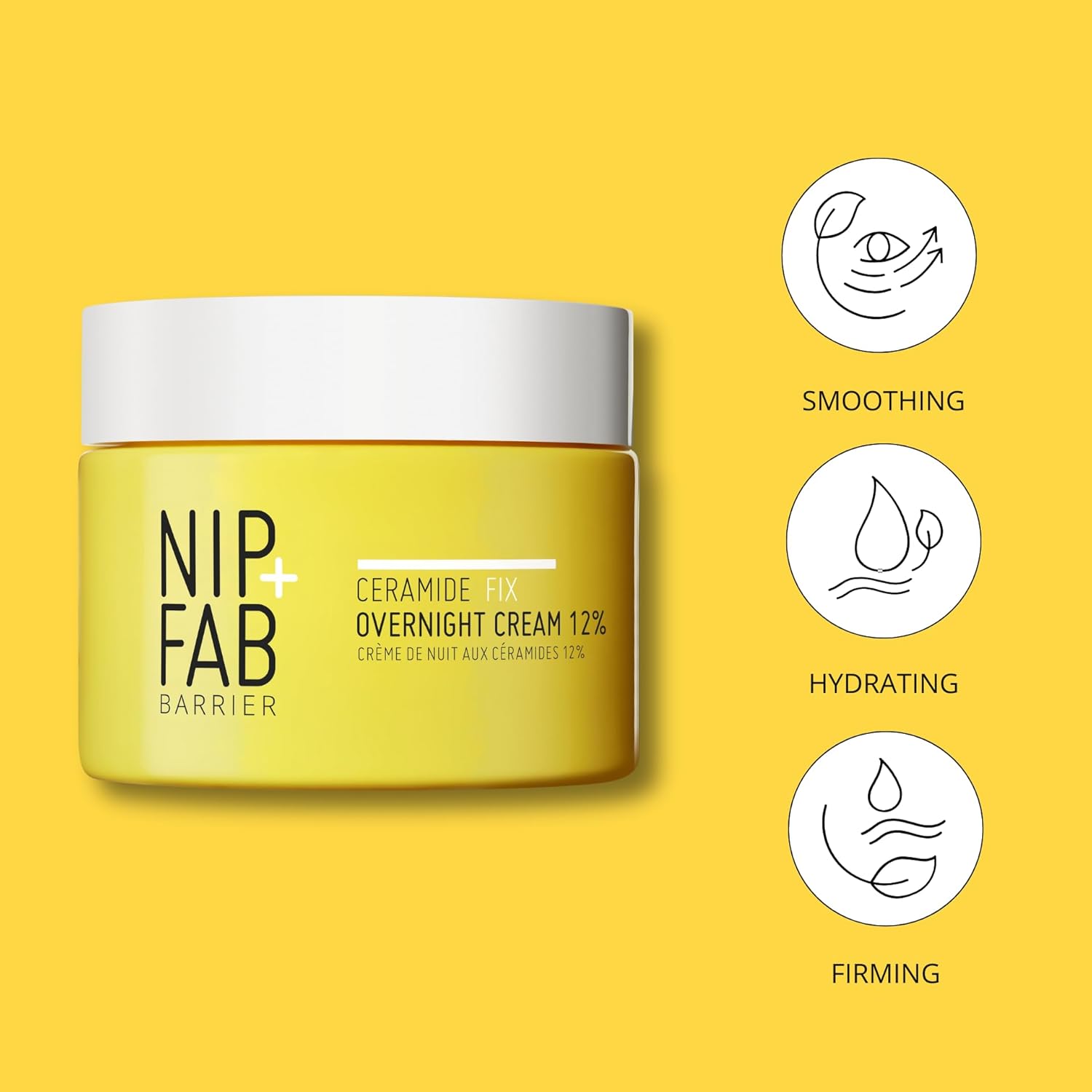 Nip+Fab Ceramide Fix Overnight Cream 12% 50 Ml, Luxurious Skin Barrier Replenisher, Elastin Production Support, Giving Your Skin A Firmer, More Youthful Appearance, With Azelaic Acid And Biolin