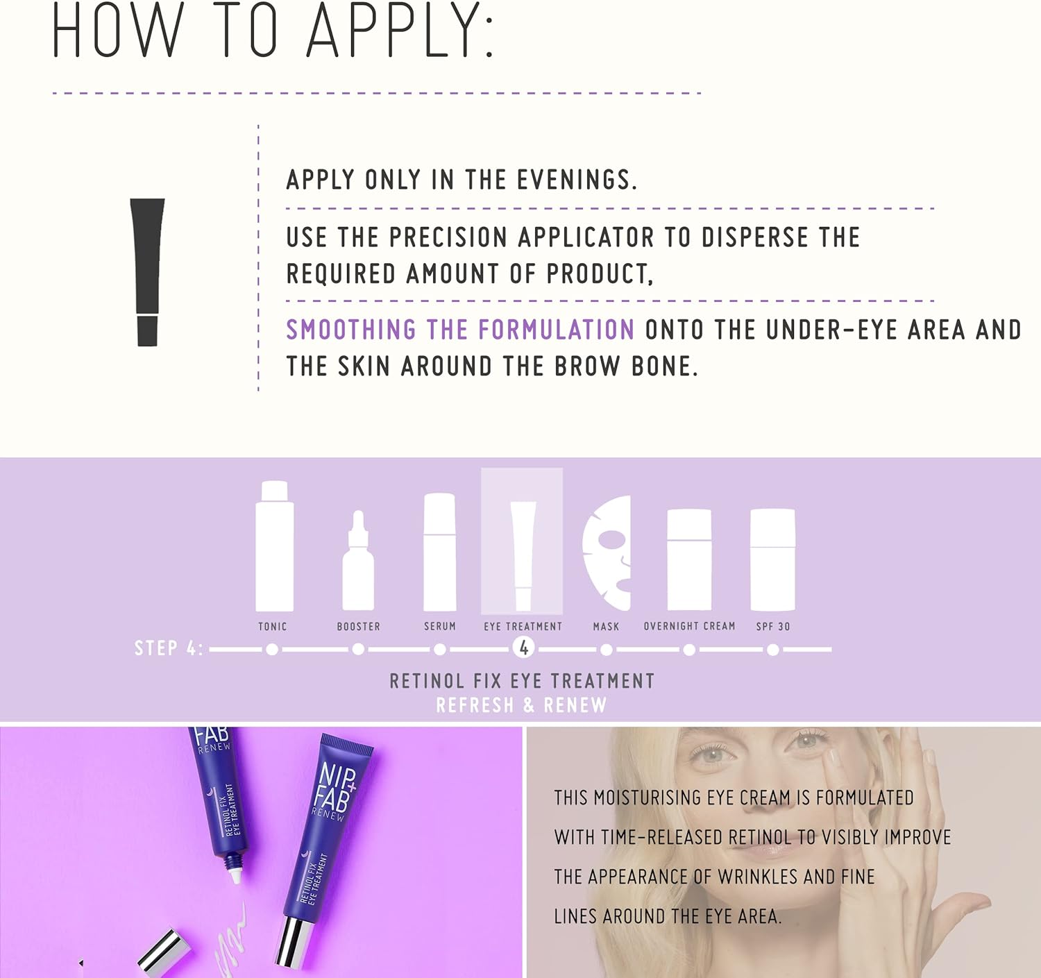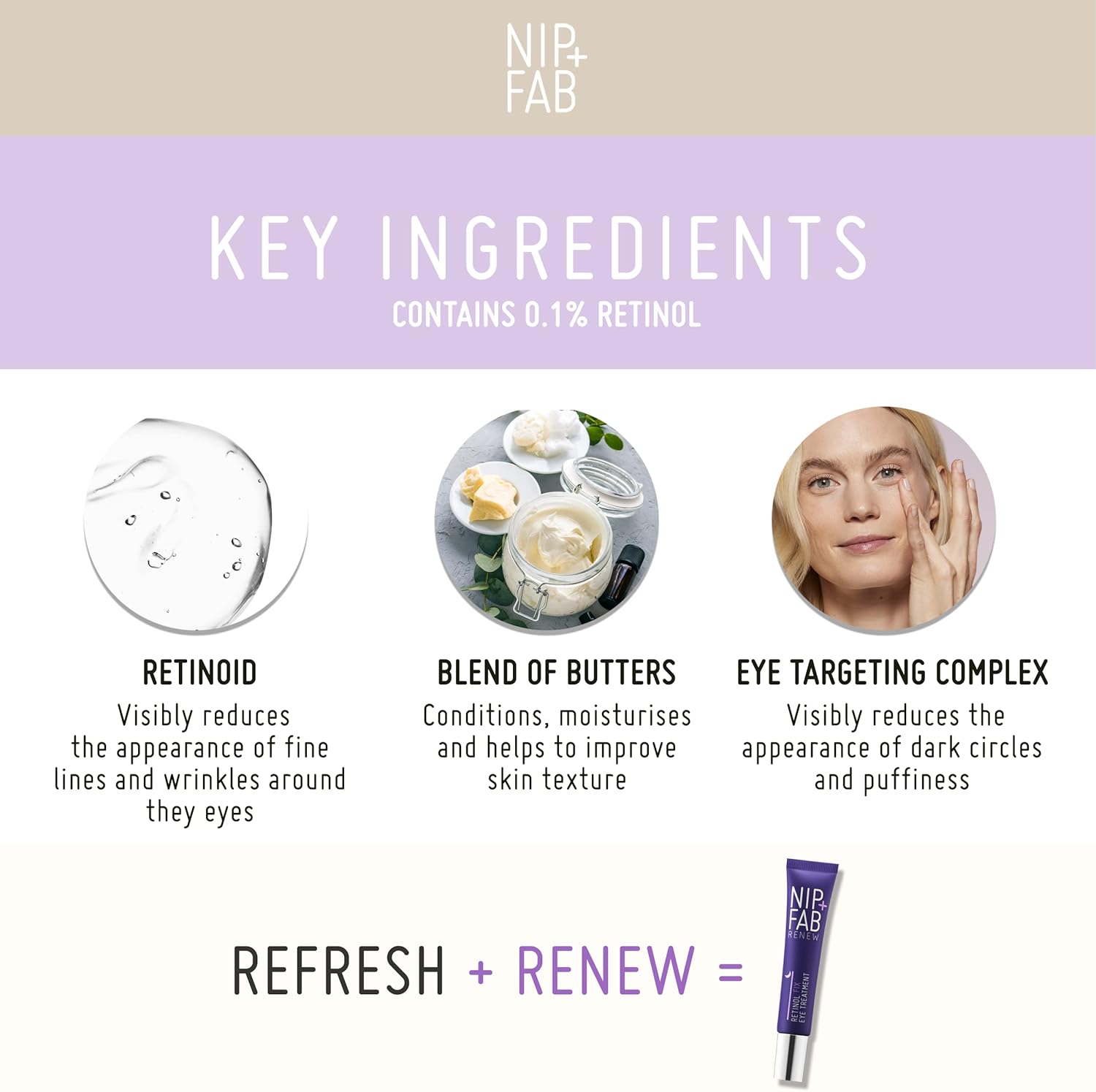 Nip + Fab Retinol Fix Eye Treatment 0.1% Retinol Eye Cream Anti-Aging Moisturizing For Fine Lines Wrinkles Dark Circles Puffiness And Bags Under Eyes, 15 Ml