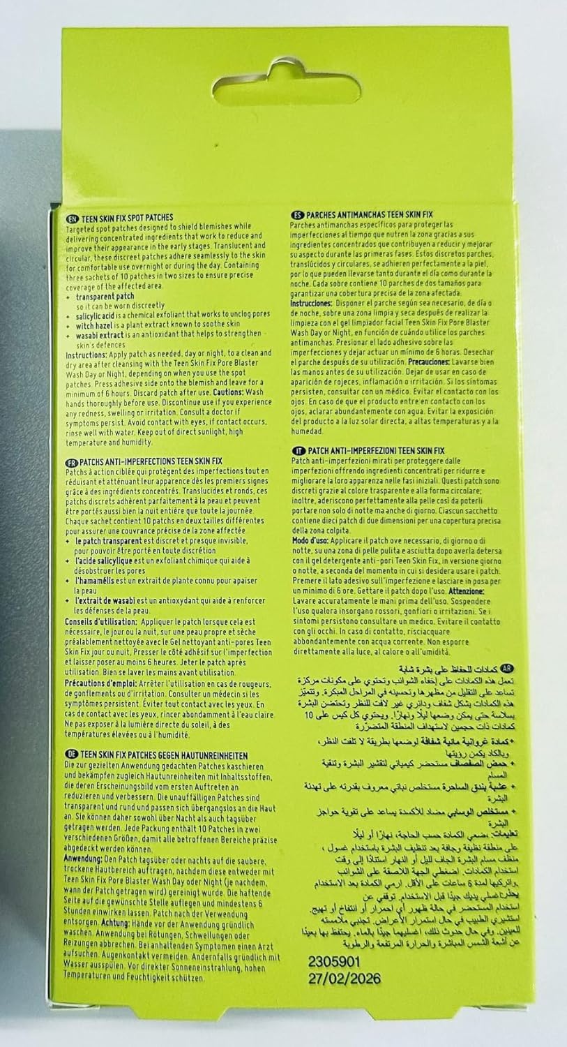 Nip+Fab Teen Skin Spot Patches, 30 Patches, Perfect For Blemish-Prone Teenage Skin, Anti-Spots With Salicylic Acid, Witch Hazel And Wasabi Extract, Face Skin Exfoliating, Calming