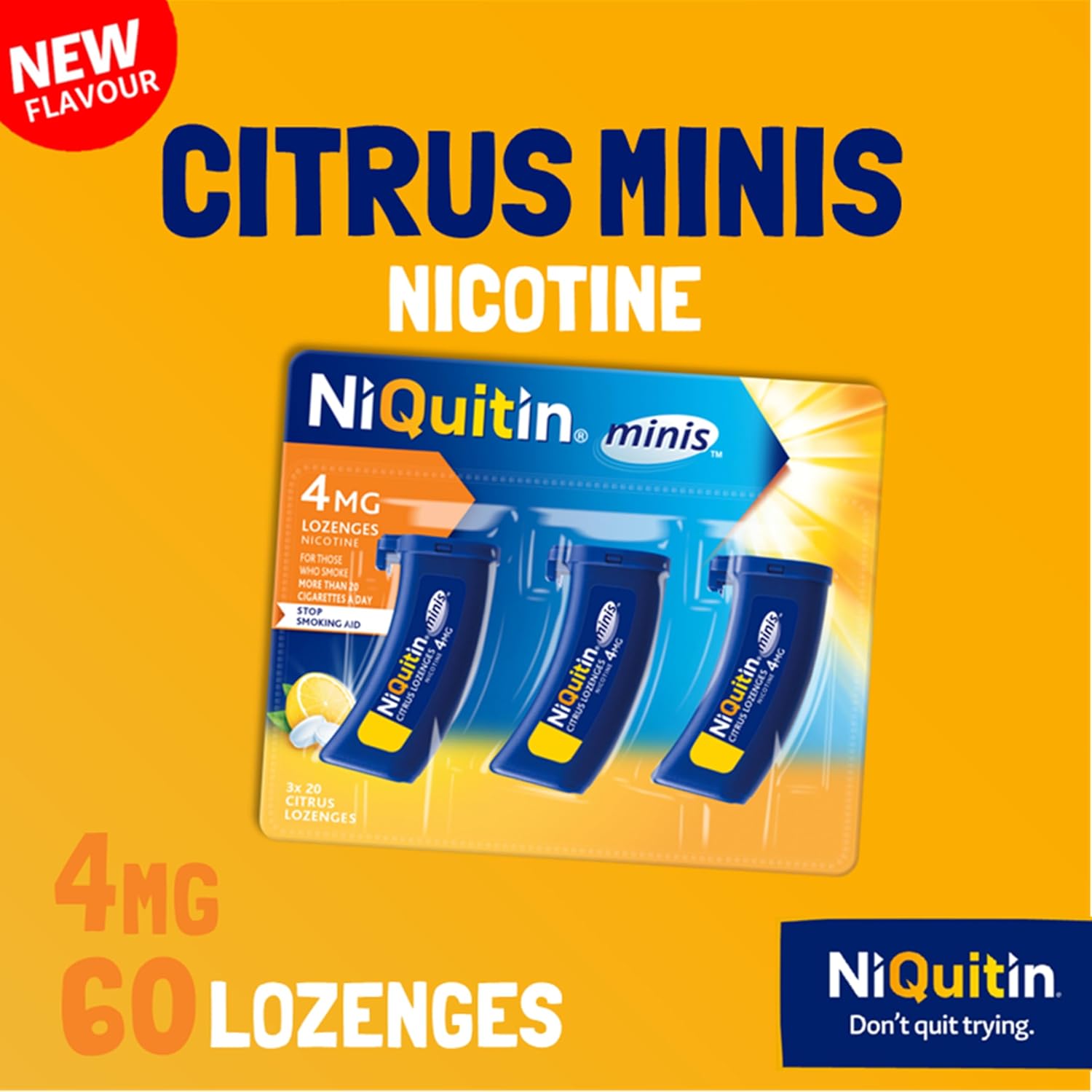 Niquitin 4Mg Minis Citrus Lozenges - Citrus Flavour (3 X Pack Of 20 Minis Nicotine Lozenges) - Smoking Craving Relief In Just 3 Minutes* - On The Go Oral Stop Smoking Aid - Pocket Sized Containers