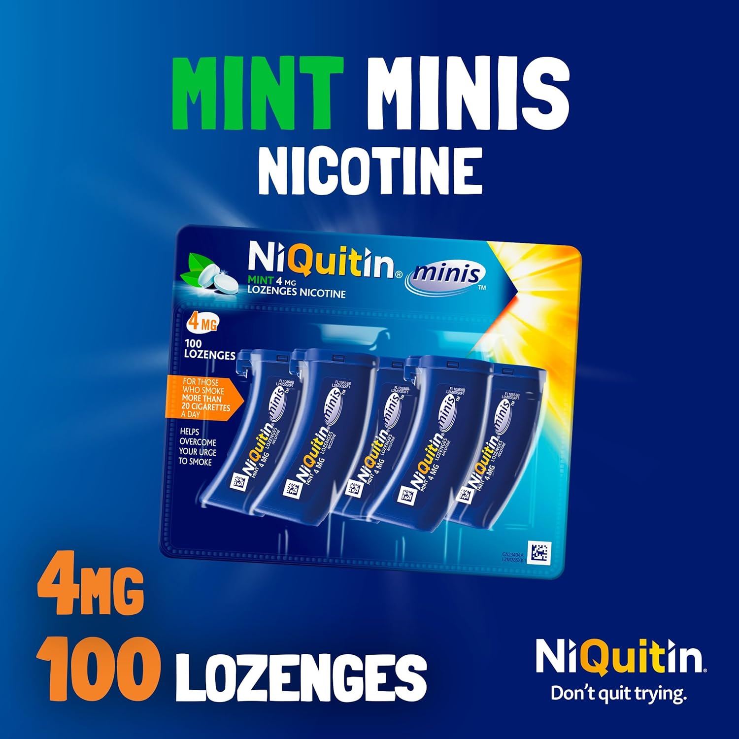 Niquitin Minis Mint 4 Mg Lozenges - Effective Smoking Craving Relief - Practical Pocket-Sized Container - 100 Mini Lozenges - Fast Acting Relief - Reduce And Quit Smoking Aid