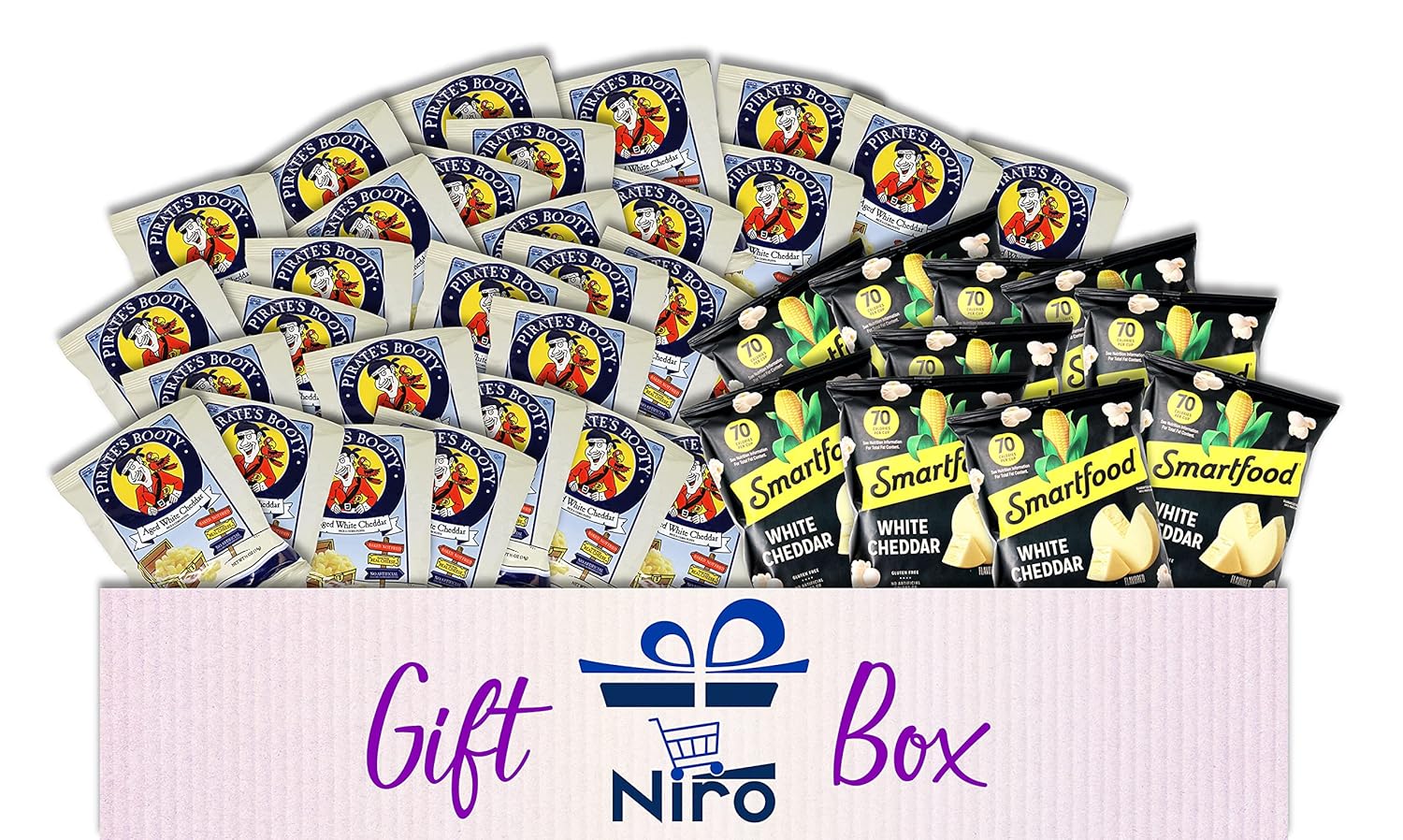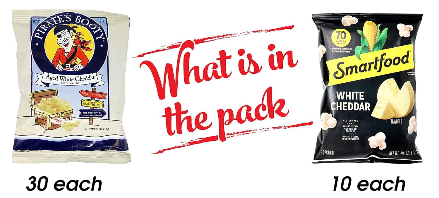 ??In this kit, you will get 40-pack 30 Pirates Booty aged white cheddar and 10 Smart Food White Cheddar. Enjoy a variety of delicious snacks! Perfect for sharing with friends or a snack on-the-go!10??2 amazing flavors - a delicious blend of sweet, savory and salty Pirate's Booty and a healthier, flavorful Smart Food snack pack. Perfect for any occasion!10??A perfect snack for anyone counting their calories! Enjoy a guilt-free treat with each individual pack containing no more than 70 calories in each bag !10??Great for party's - share the fun with this snack pack filled with 40 bags of delicious Pirate's Booty and Smart Food! Perfect for gatherings and get-togethers10??Gluten-Free - Enjoy a delicious and safe snack with these 40 snack packs! All of them are made with ingredients free of gluten, perfect for those with a gluten intolerance10