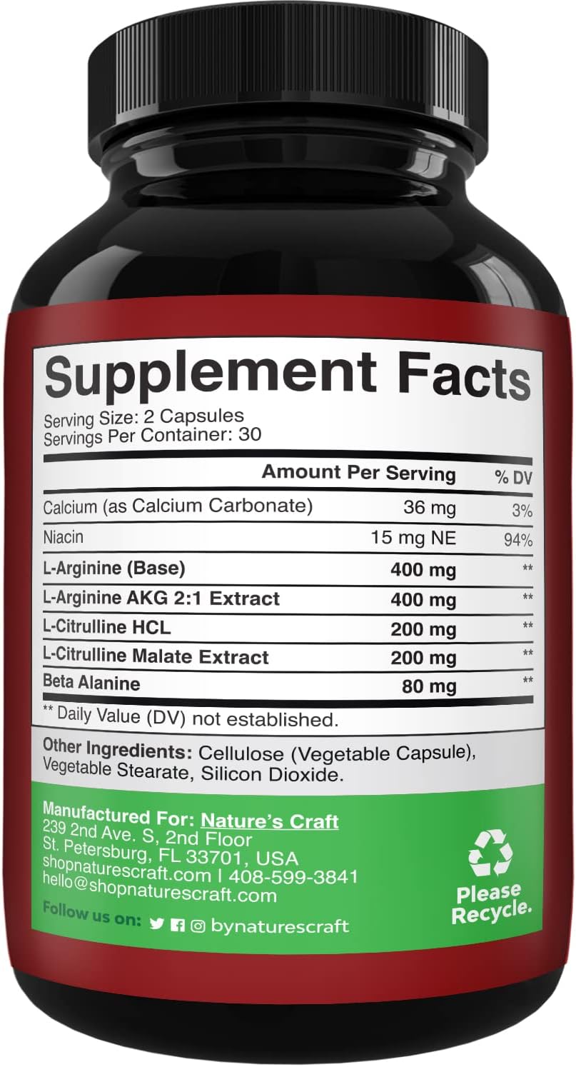Nitric Oxide Booster Complex With L-Arginine & L-Citrulline Amplifier For Increased Endurance Powerful Antioxidant