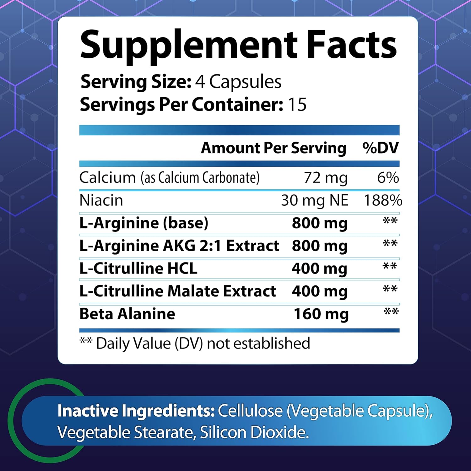 Nitric Oxide Supplement L Arginine Extra Strength - Citrulline Malate, Aakg, Beta Alanine - Premium Muscle Supporting Ni