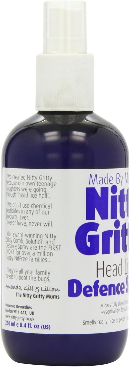 About The Product : Directions: Before use, check hair is free from lice. If there is evidence of head lice, we recommend you first use the Nitty Gritty Aromatherapy Head Lice Kit. Spray Nitty Gritty generously on hair from a distance of about 12", paying particular attention to the areas behind the ears, nape of the neck and on the crown. The amount needed will vary depending on hair length. Allow to dry naturally. Use on a regular basis