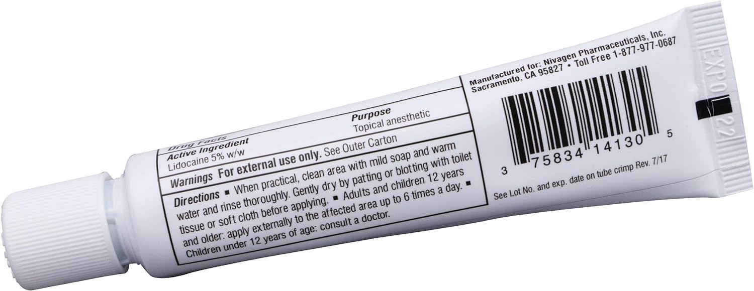 DESCRIPTION : Nivagen Maximum Strength Lidocaine 5% Anorectal Cream | Hemorrhoid Relief from Pain, Itching, Burning | 30 Gram Tube Lidocaine 5% Cream
