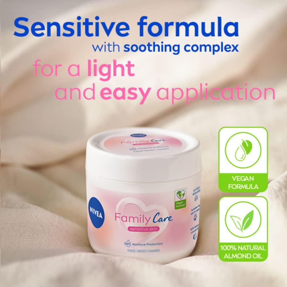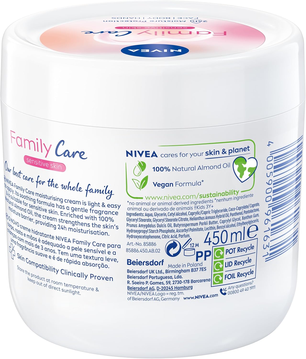 Nivea Almond, Family Care Sensitive Moisturising Cream, Body Cream For Dry Skin, Sensitive Skin Moisturiser With Natural Almond Oil, Suitable For The Whole Family, 450 Ml (Pack Of 1)