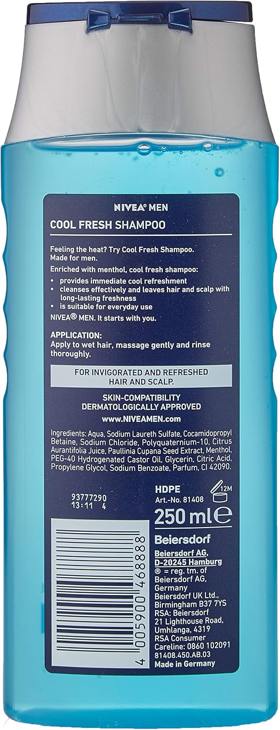 Nivea Men Cool Fresh Shampoo 250Ml, Daily Shampoo For Men, Cool & Refreshing Hair Care, Menthol Shampoo Suitable For Normal To Greasy Hair
