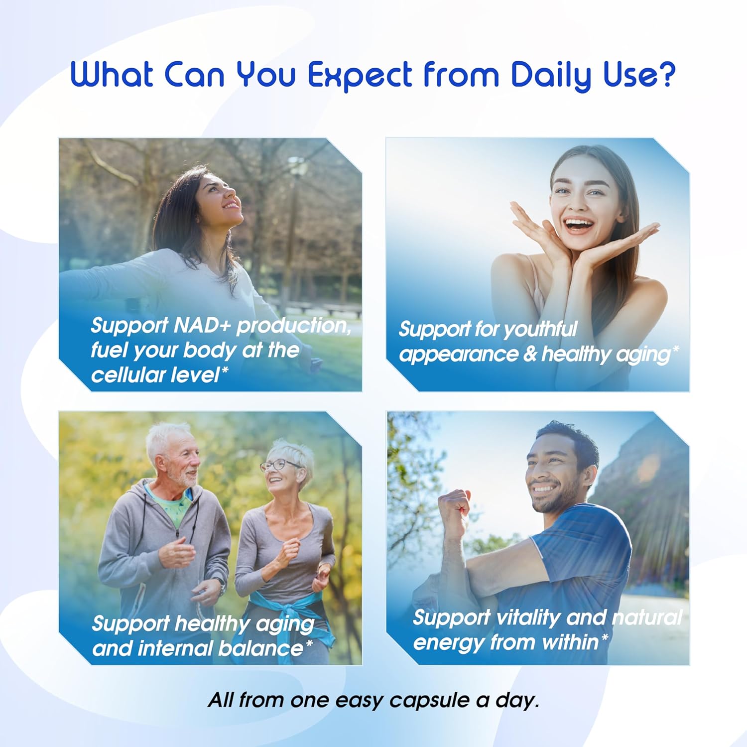 SUPPORT HEALTHY AGING: With Nicotinamide Riboside, Trimethylglycine, and Apigenin, this formula supports healthy NAD+ levels to support energy, focus, and a sense of vitality, helping you stay active, clear-headed, and refreshed as you age